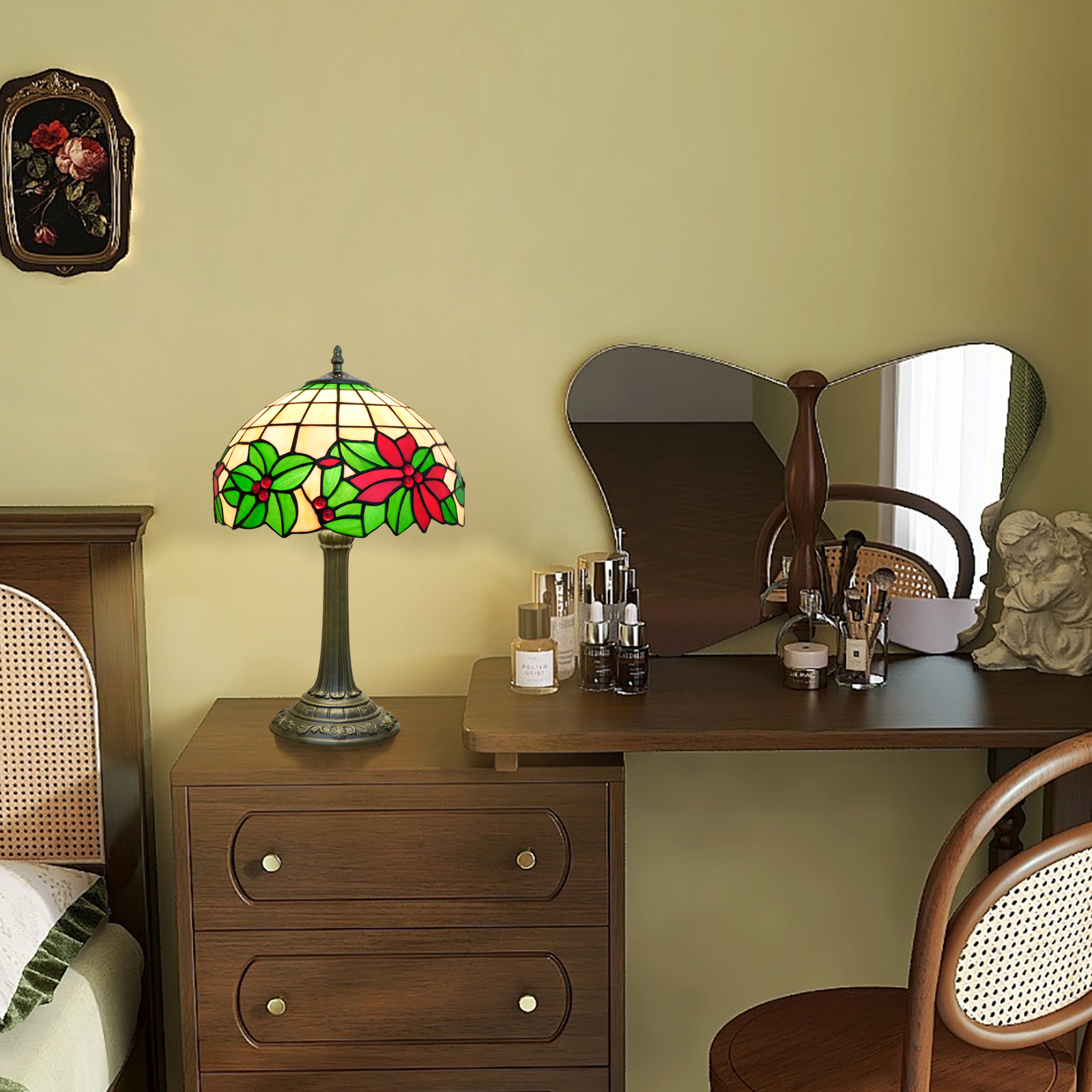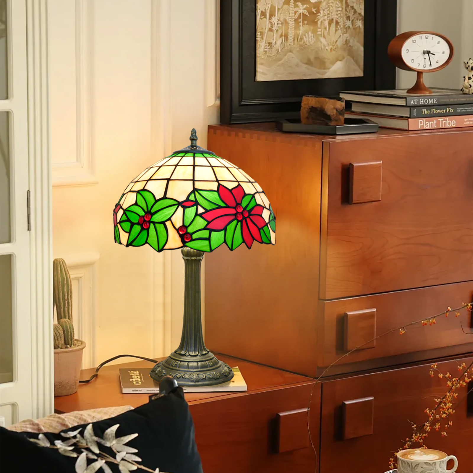 12-Inch Tiffany Style Handmade Table Lamp: With Christmas Flower Patterns, It Illuminates The Retro Artistic Atmosphere Of The Festival And Is Suitable For Home Decoration In Bedrooms, Dormitories, Living Rooms, Etc