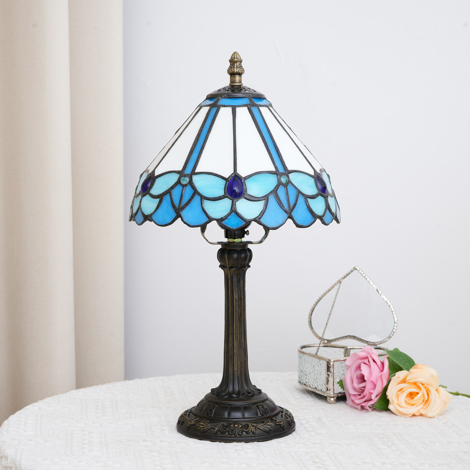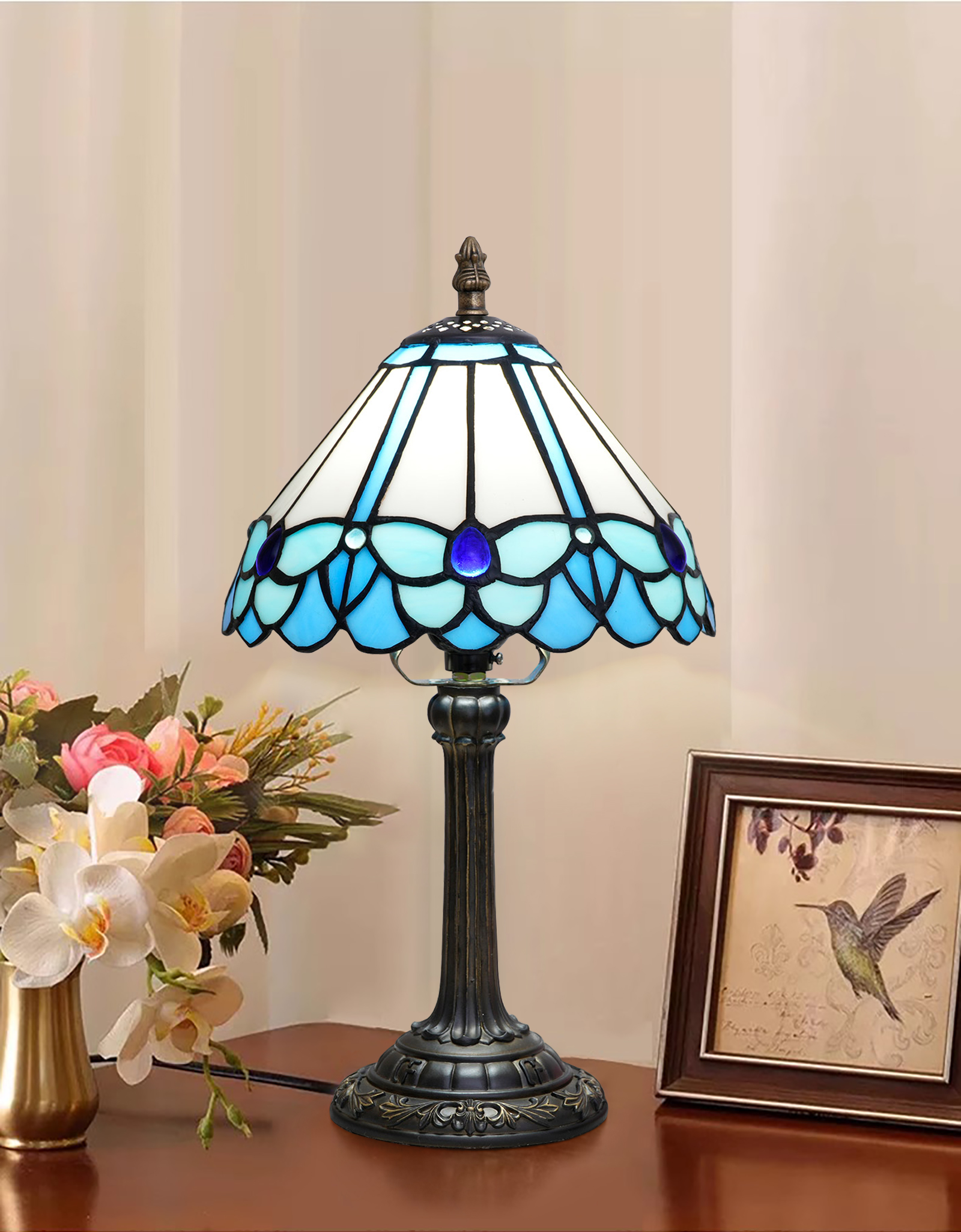 Bedside table placement: Placing it on the bedside table in the bedroom is an excellent choice. At night, soft light filters through the Tiffany style stained glass, creating a warm and romantic sleeping atmosphere. The sky-blue light and shadow blend perfectly with the common warm tones in bedrooms (such as beige, light pink, etc.), and the bronze base adds a touch of retro charm to the space. When reading before going to bed, the local lighting provided by the desk lamp is soft and not dazzling, which can protect the eyes. Meanwhile, its artistic shape makes the bedside table area a highlight of the bedroom decoration, enhancing the overall style of the bedroom.