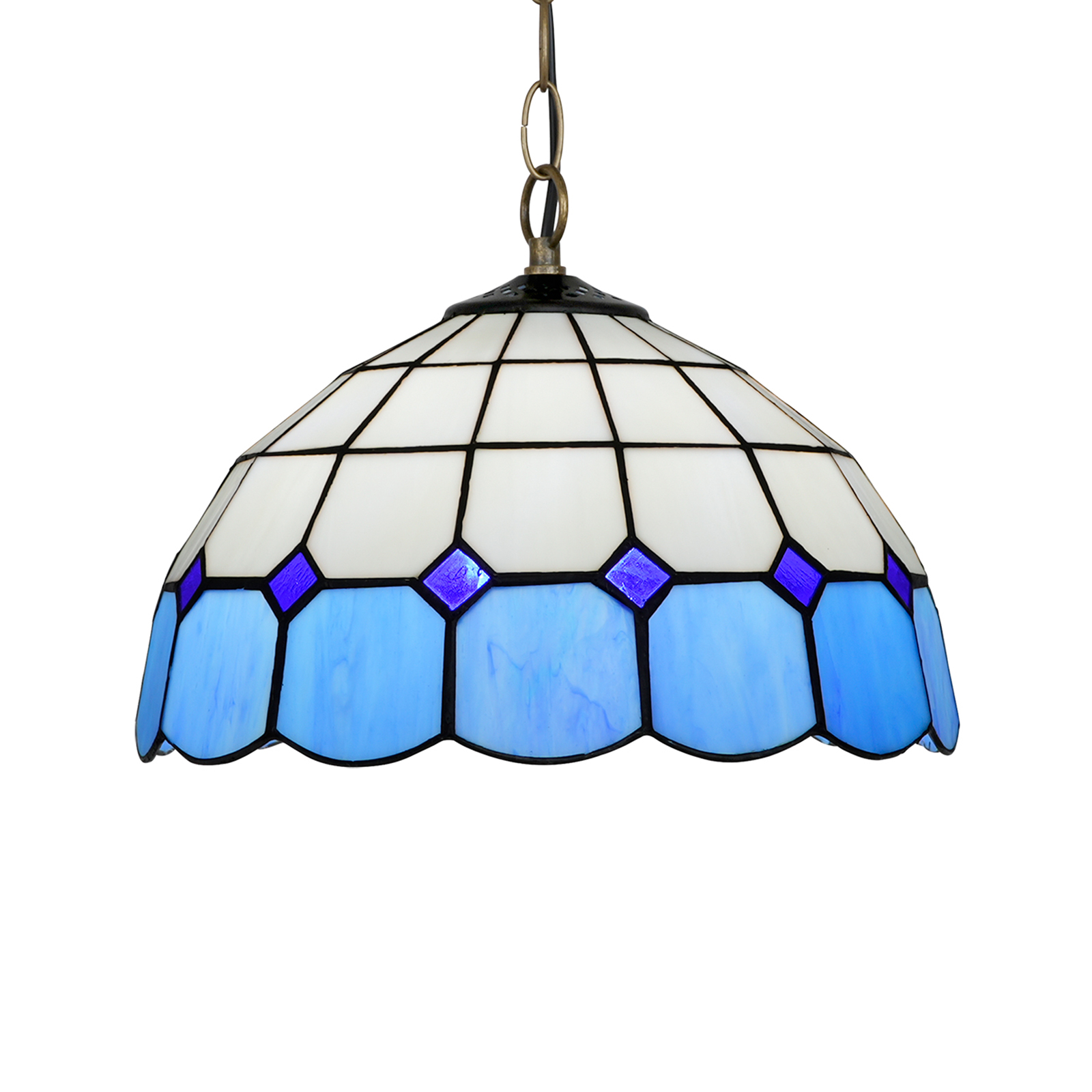 Blivuself Tiffany Style Stained Glass 12-Inch Blue Lattice Design Chandelier European And American Retro Garden Style Suitable For Living Room, Dining Room, Bedroom, Bar And Other Indoor Home Decoration 12-Inch Blue And White Lattice - Regular Single Chain Chandelier OFP1048