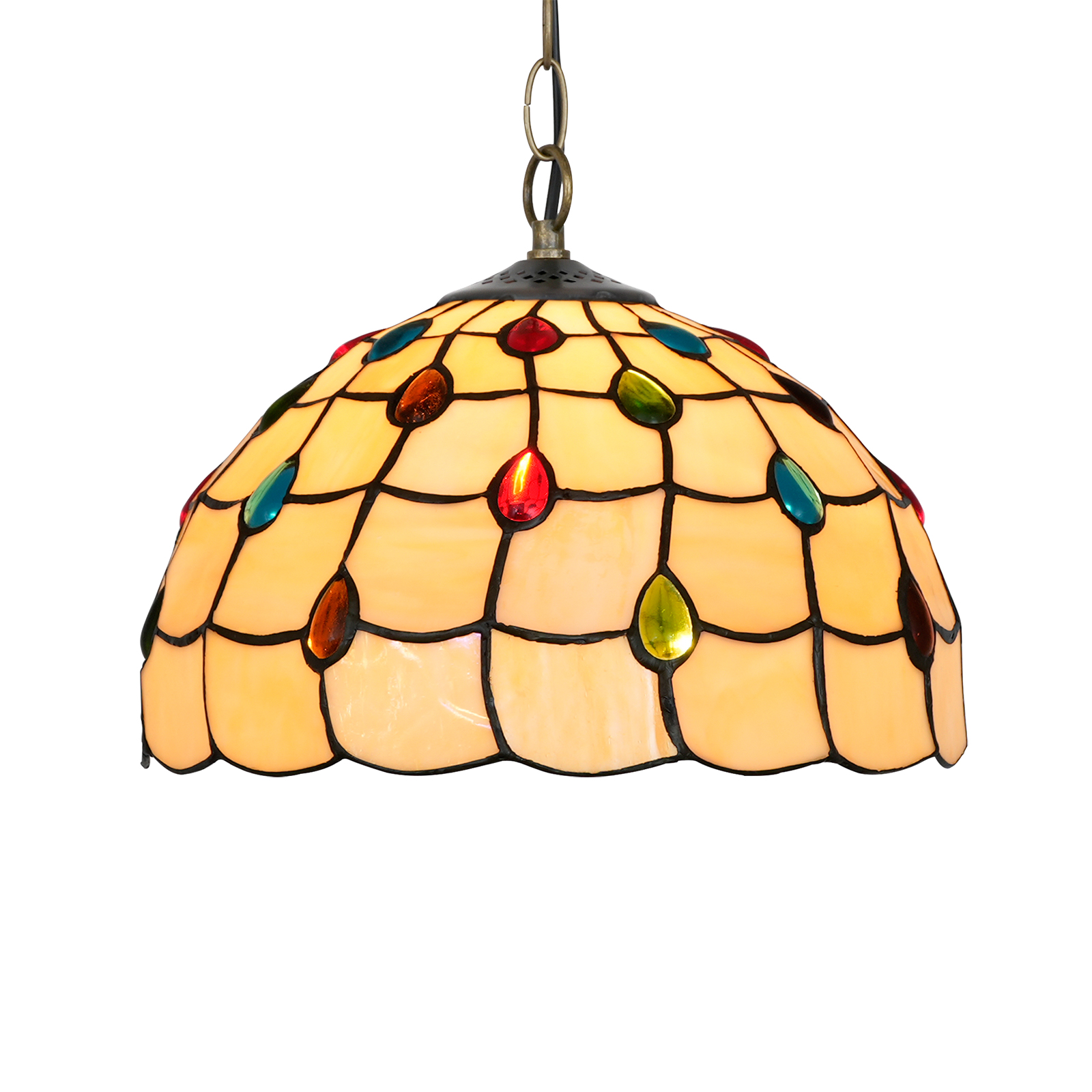 Blivuself Tiffany Style Stained Glass 12-Inch Warm Yellow Chandelier European And American Retro Pastoral Style Suitable For Living Room, Dining Room, Bedroom, Bar And Other Indoor Home Decoration 12-Inch Colored Beads - Regular Single Chain Chandelier OFP1053