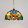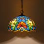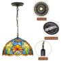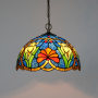 Blivuself Tiffany Style Stained Glass 12-Inch Blue Chandelier European And American Retro Garden Style Suitable For Living Room, Dining Room, Bedroom, Bar And Other Indoor Home Decoration 12-Inch Blue Red Flower - Regular Single Chain Chandelier OFP1160