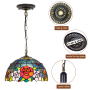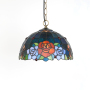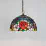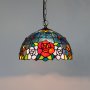 Blivuself Tiffany Style Stained Glass 12-Inch Blue Chandelier European And American Retro Garden Style Suitable For Living Room, Dining Room, Bedroom, Bar And Other Indoor Home Decoration 12-Inch Blue Rose - Regular Single Chain Chandelier OFP1174