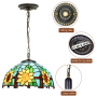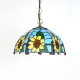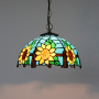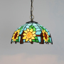 Blivuself Tiffany Style Stained Glass 12-Inch Blue Chandelier European And American Retro Garden Style Suitable For Living Room, Dining Room, Bedroom, Bar And Other Indoor Home Decoration 12-Inch Blue Sunflower - Regular Single Chain Chandelier OFP1184