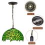 Blivuself Tiffany Style Stained Glass 12-Inch Green Chandelier European And American Retro Garden Style Suitable For Living Room, Dining Room, Bedroom, Bar And Other Indoor Home Decoration 12-Inch Green Leaves - Regular Single Chain Chandelier OFP1154