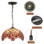 Blivuself Tiffany Style Stained Glass 12-Inch Pink Chandelier European And American Retro Garden Style Suitable For Living Room, Dining Room, Bedroom, Bar And Other Indoor Home Decoration 12-Inch Cherry Blossom - Regular Single Chain Chandelier OFP1155