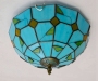Blivuself Tiffany Style Stained Glass 12-Inch Blue Ceiling Light European And American Retro Style, Suitable For Living Room, Dining Room, Bedroom, Bar And Other Indoor Home Decoration 12-Inch Blue Leaf - white plate Ceiling light OFC3011