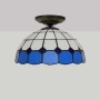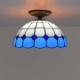Blivuself Tiffany Style Stained Glass 12-Inch Blue Downward Ceiling Light European And American Retro Style, Suitable For Living Room, Dining Room, Bedroom, Bar And Other Indoor Home Decoration 12-Inch Blue And White Lattice - Small Mouth Downward Ceiling Light OFC2021