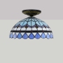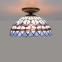 Blivuself Tiffany Style Stained Glass 12 Inch Blue Downward Ceiling Light European And American Retro Style, Suitable For Living Room, Dining Room, Bedroom, Bar And Other Indoor Home Decoration 12 Inch Mediterranean - Small Mouth Downward Ceiling Light - Feather OFC2001
