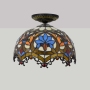 Blivuself Tiffany Style Stained Glass 12-Inch Brown Downward Ceiling Light European And American Retro Style, Suitable For Living Room, Dining Room, Bedroom, Bar And Other Indoor Home Decoration 12-Inch Love Beads - Small Mouth Downward Ceiling Light - Dragon Tail OFC2013