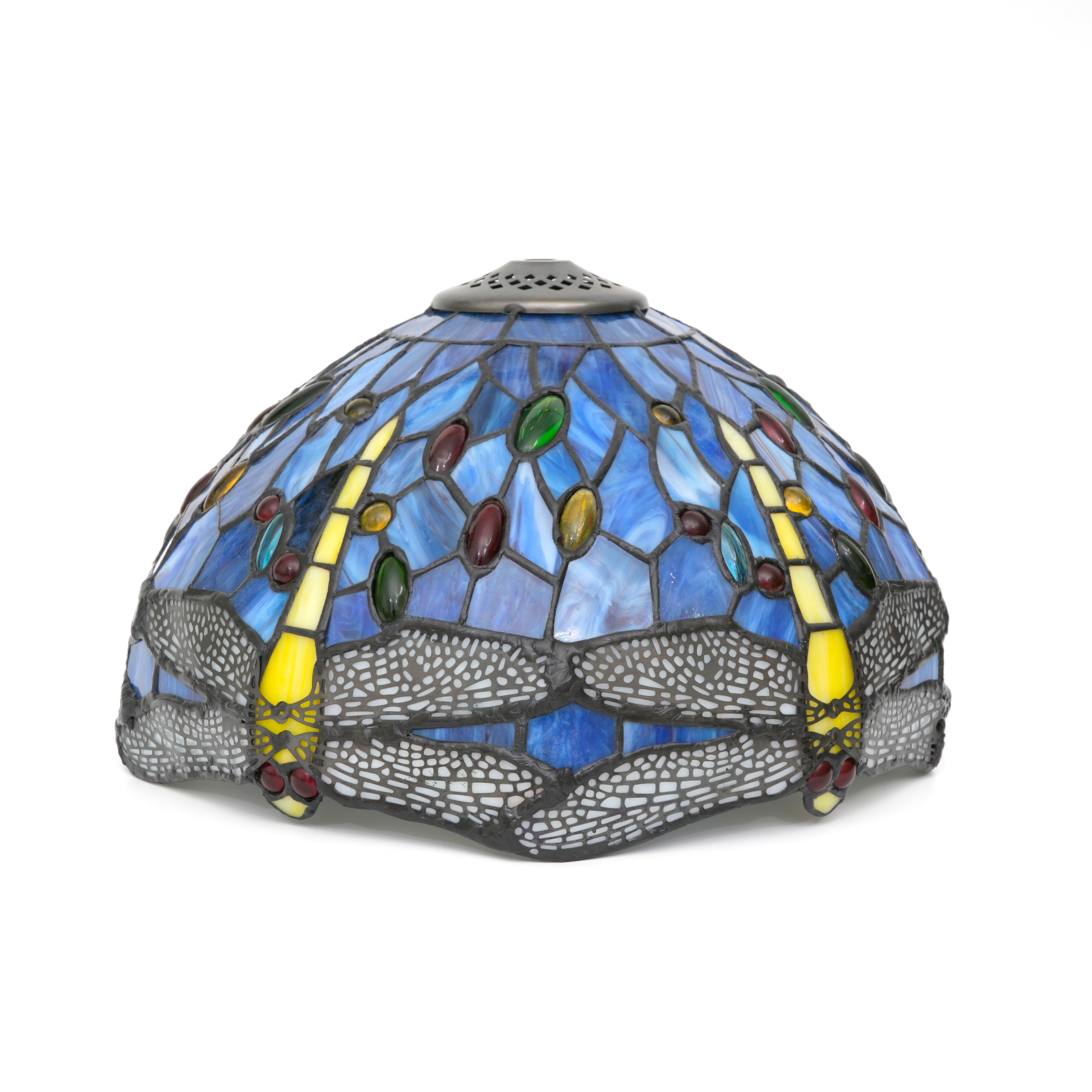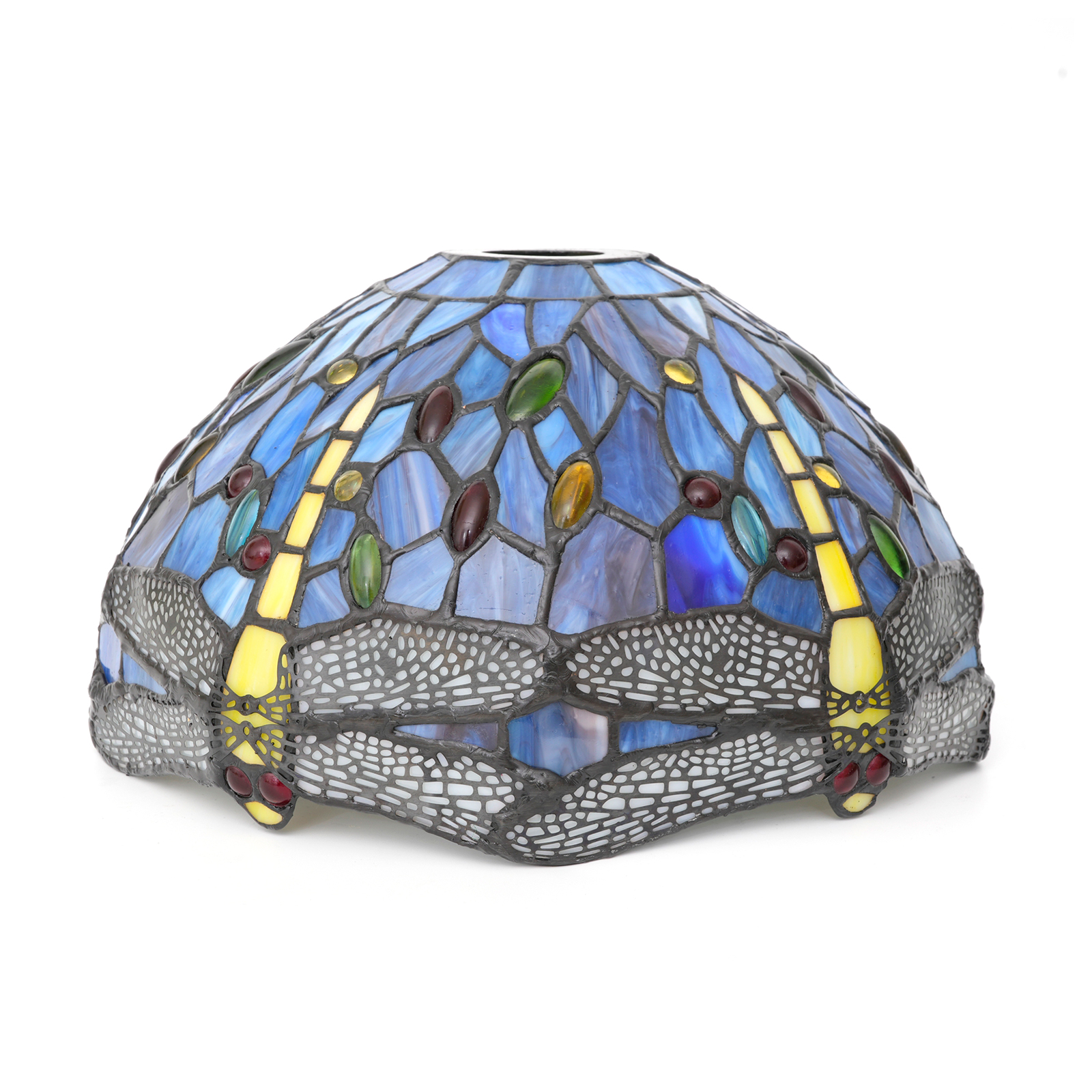 12-Inch Blivuself Tiffany Retro-Style Stained Glass Replacement Lampshade, Animal Series Dragonfly Pattern Small Hole Design, Suitable For Floor Lamps, Chandeliers, Ceiling Lamps, Etc. (DZ12007X, 1pcs, Blue)