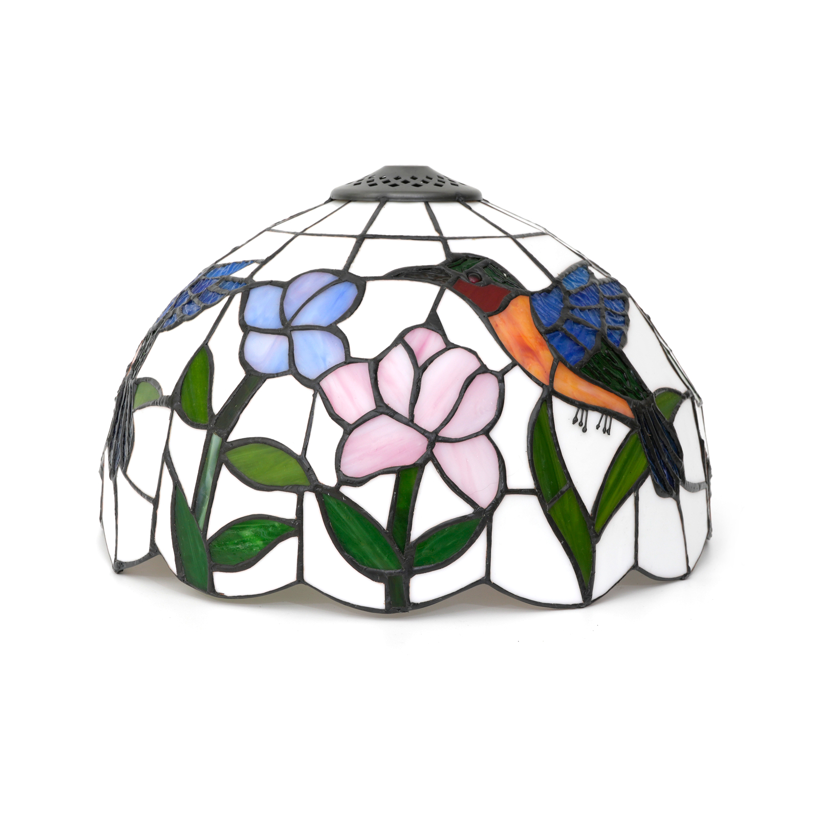 12-Inch Blivuself Tiffany Stained Glass Replacement Lampshade, With A Retro Country Style Hummingbird Small Mouth Design, Suitable For Table Lamps, Chandeliers, Floor Lamps, Etc. (DZ12014X, 1pcs, Pink, Purple And Blue)