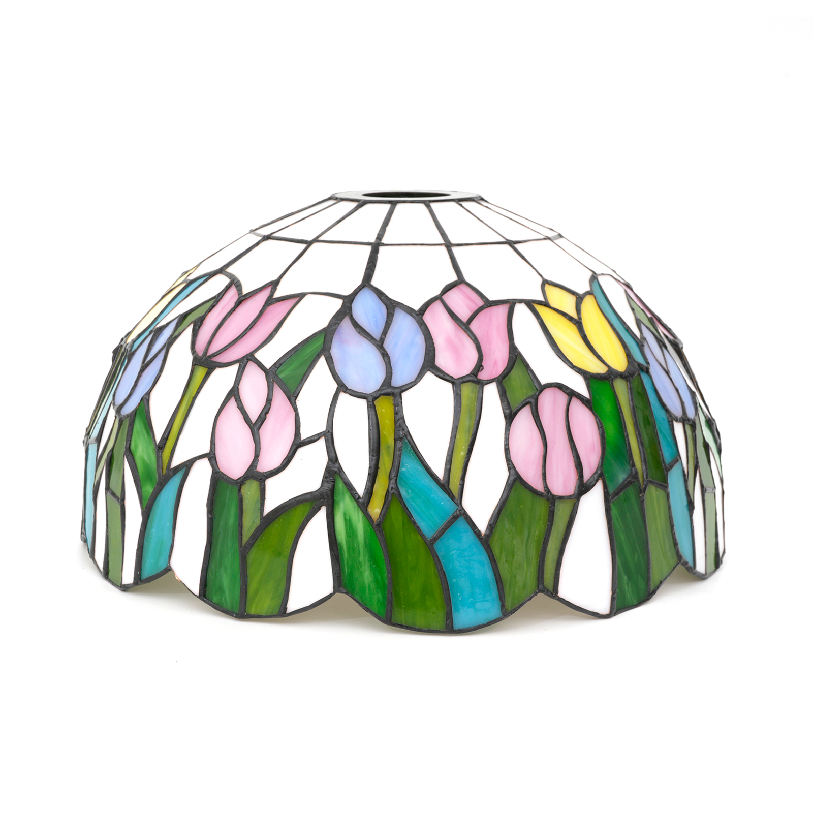 12-Inch Blivuself Tiffany Stained Glass Replacement Lampshade, Retro Country Style Tulip Design, Suitable For Table Lamps, Chandeliers, Floor Lamps, Etc. (DZ12013X, 1pcs, Pink, Purple And Yellow)