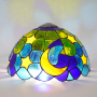 12-Inch Blivuself Tiffany Stained Glass Replacement Lampshade, Victorian Retro Style Star And Moon Small Mouth Design, Suitable For Table Lamps, Chandeliers, Floor Lamps, Etc. (DZ12015X, 1pcs, Blue)