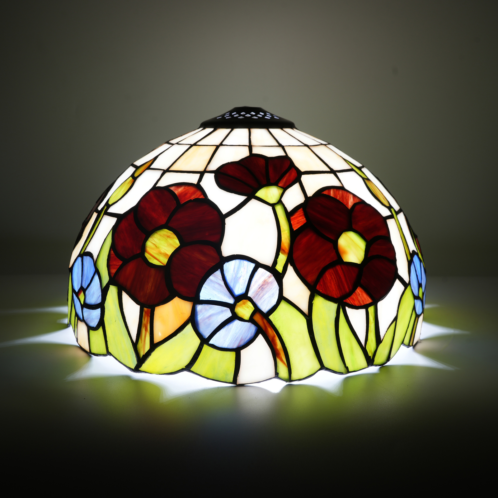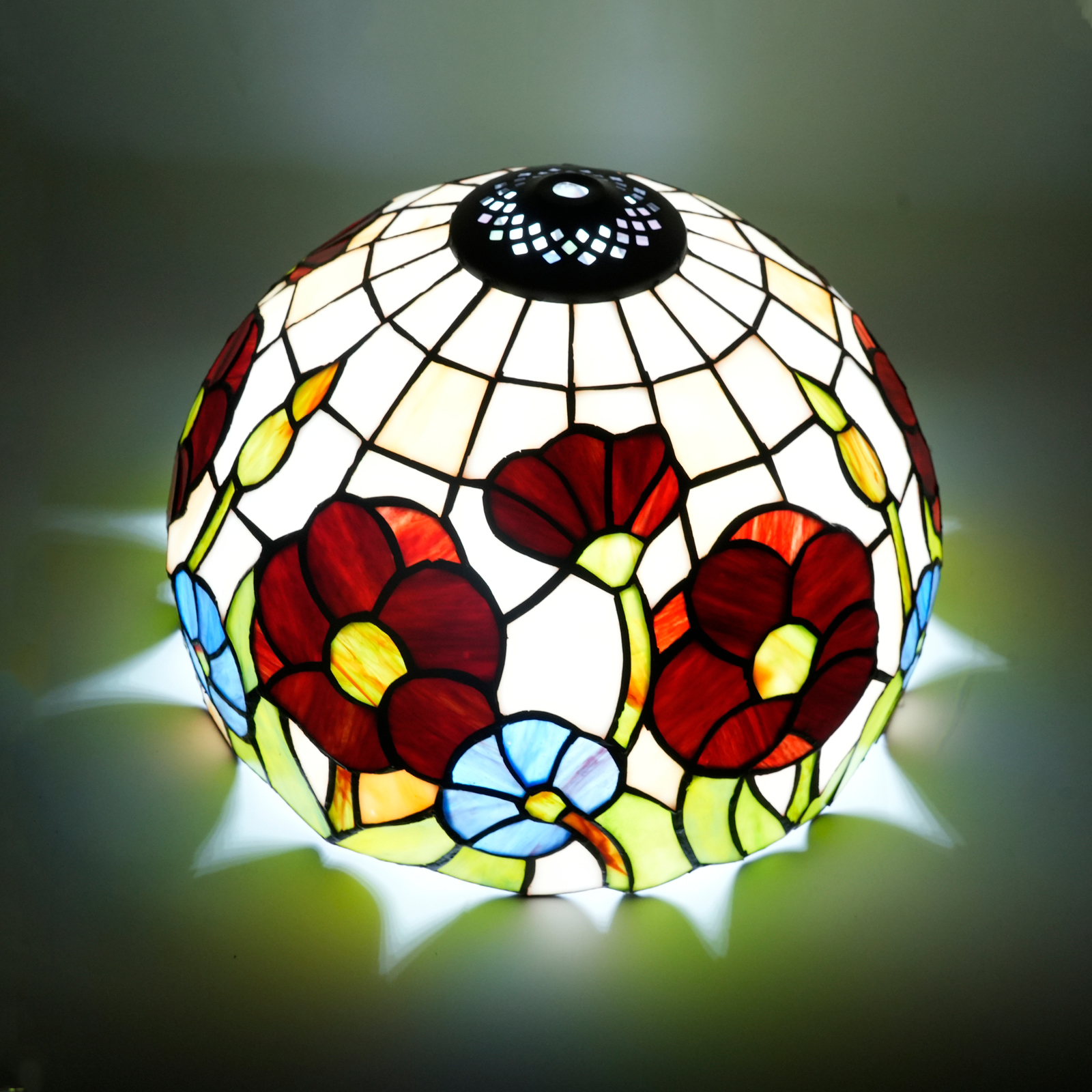 When used as the lampshade for the chandelier in the living room, the moment the light is turned on, the brilliant light scatters through the colored glass, and the floral patterns are clearly projected onto the ceiling and the surrounding walls, instantly enhancing the artistic atmosphere of the living room. Whether it's the laughter and joy at a family gathering or the quiet moments enjoyed alone, this lampshade can turn the living room into the most charming social and leisure space in the home, and become the visual focus that relatives and friends can't stop praising.