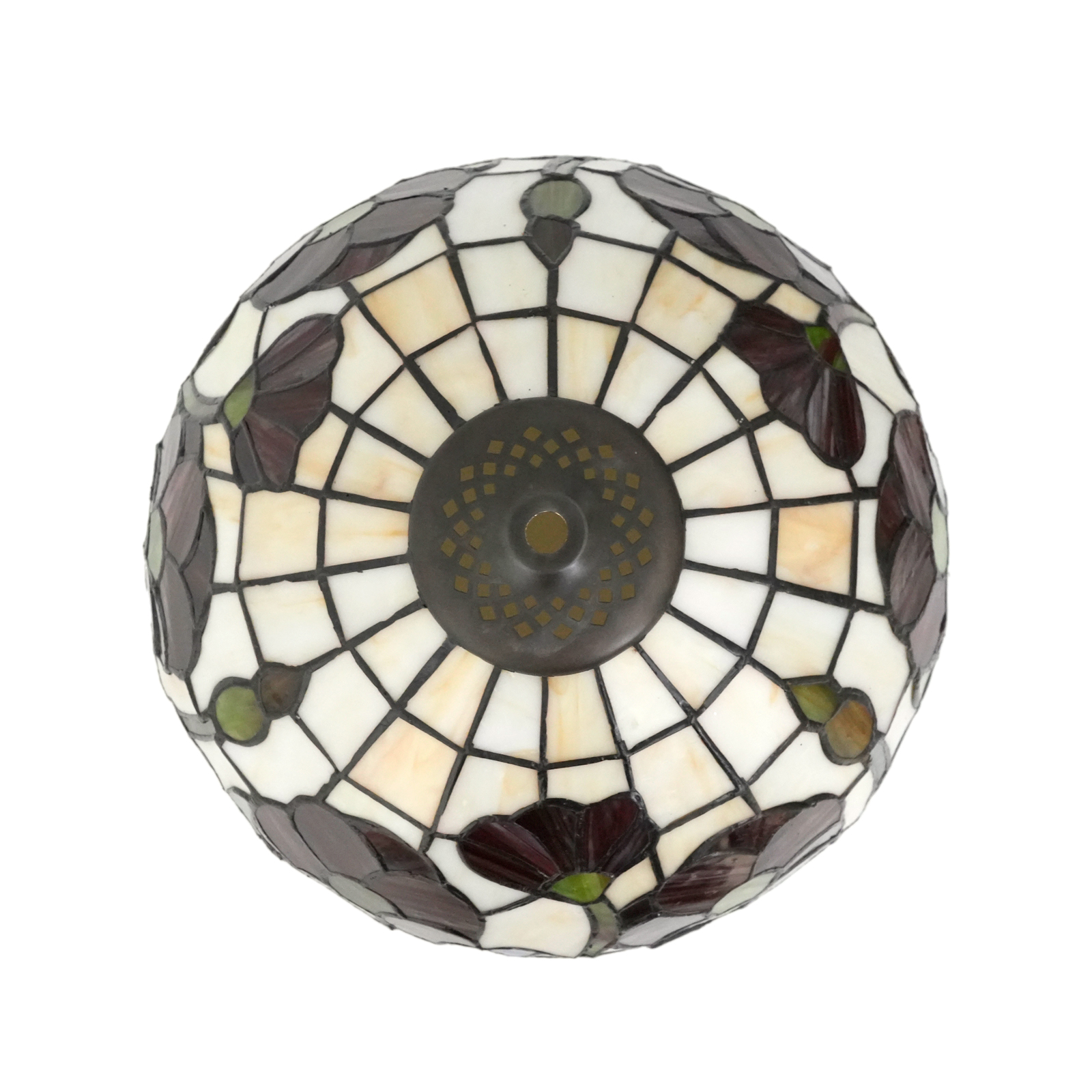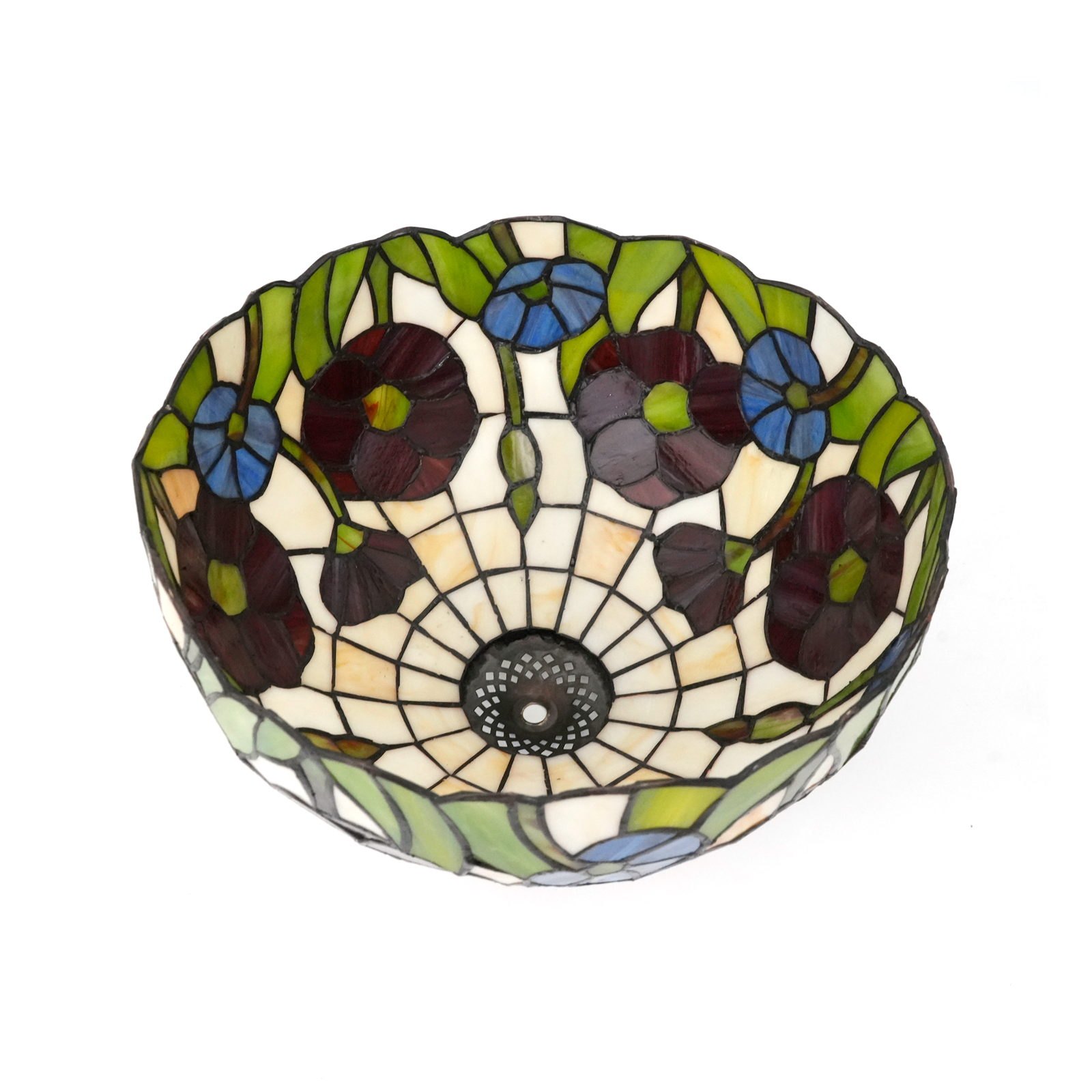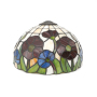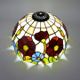 The lampshade has a diameter of 30CM (12 inches), a height of 18.5CM, and weighs 1.43Kg. It is compatible with small-hole lamps. It adopts the traditional Tiffany stained glass craftsmanship. Each piece of stained glass is carefully selected and cut by artisans, and then joined and welded by hand to finally form this lifelike floral pattern. The flowers of various shades of blue and rich, deep purple-red, paired with fresh green stems and leaves, set off by the white base glass, are like a dynamic natural painting. Every line and every touch of color showcases ingenious craftsmanship, making the lampshade an art treasure of great collection value.