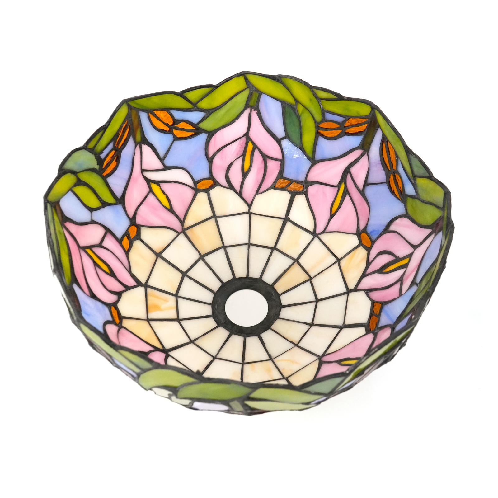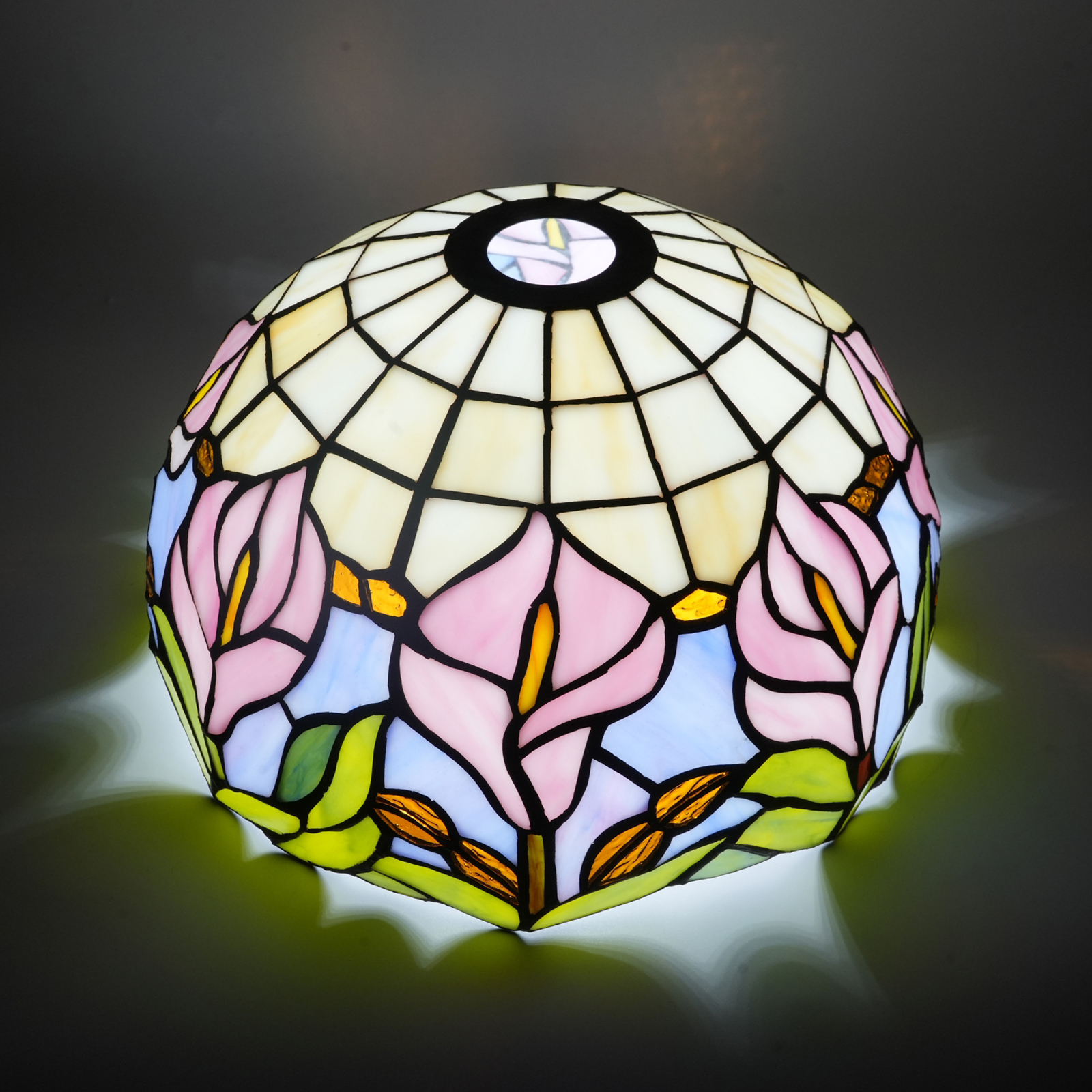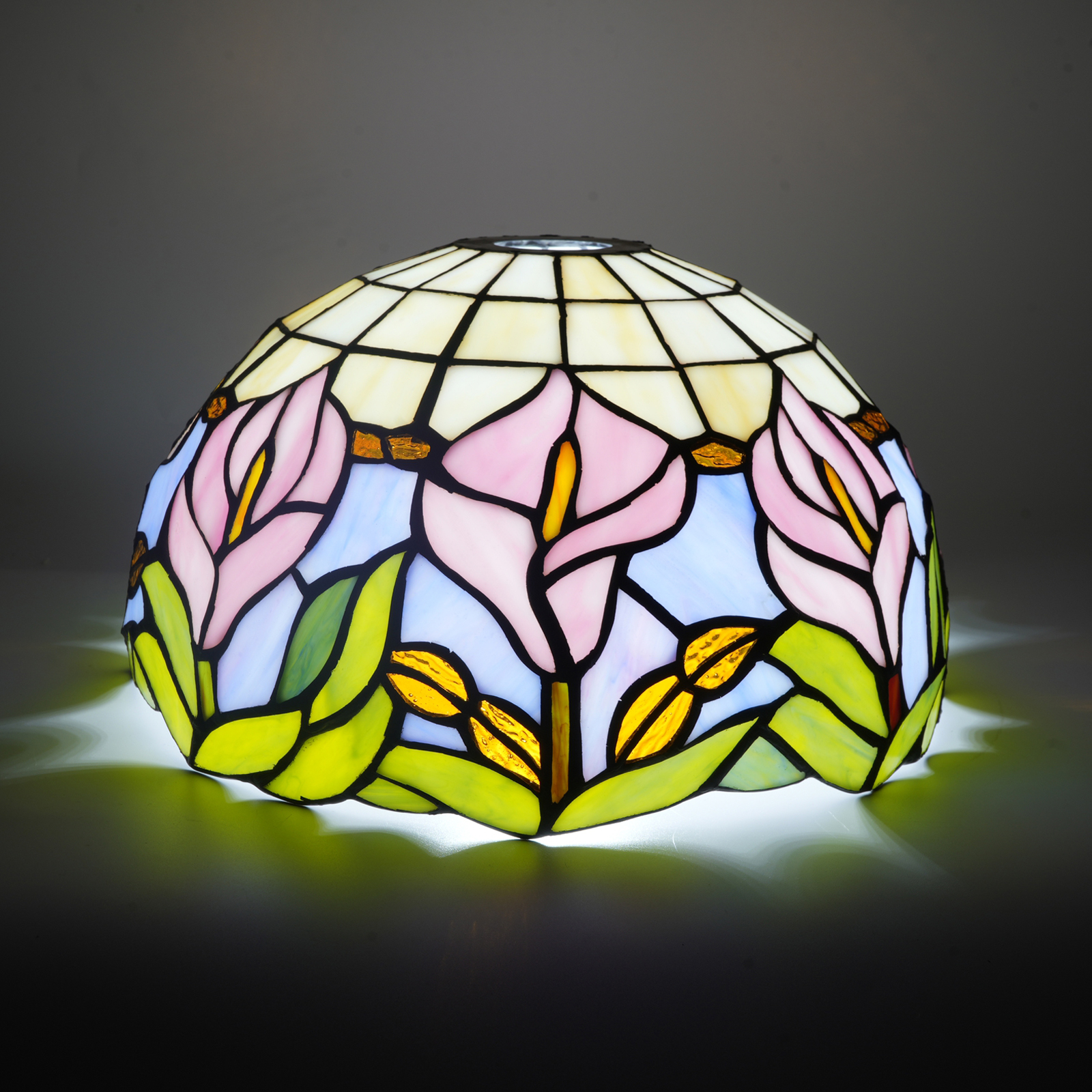 Blivuself Tiffany Stained Glass Replacement Lampshade,12-Inch Victoria Calla Lily Pattern Lampshade, Handcrafted Large Mouth, Suitable For Home Decoration Art Such As Floor Lamps And Chandeliers (Pink And Blue)DZ12033D