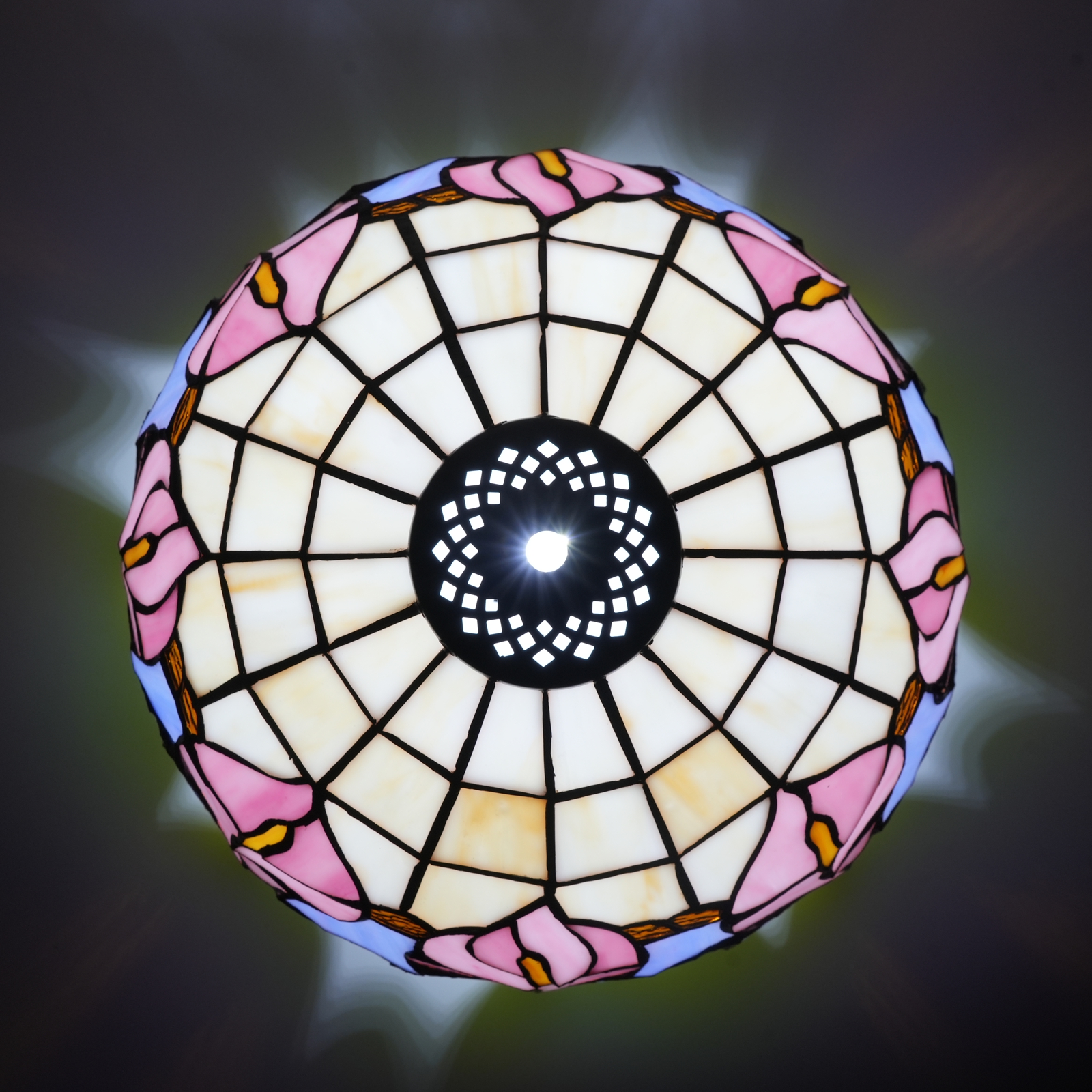 Each lampshade is hand-carved by artisans, inheriting the century-old craftsmanship of Tiffany. Cutting, splicing and welding, the gentle form of the pinkish-blue calla lily is vividly presented on the canvas of colored glass. The edges of the glass are coated with copper foil and welded at high temperatures, allowing the pink of the petals, the green of the flower leaves and the blue of the background to blend naturally. Every pattern and every color transition is brimming with the warmth of handcrafting, making the lampshade a unique artistic masterpiece and sealing the romance of the flower sea within the home.