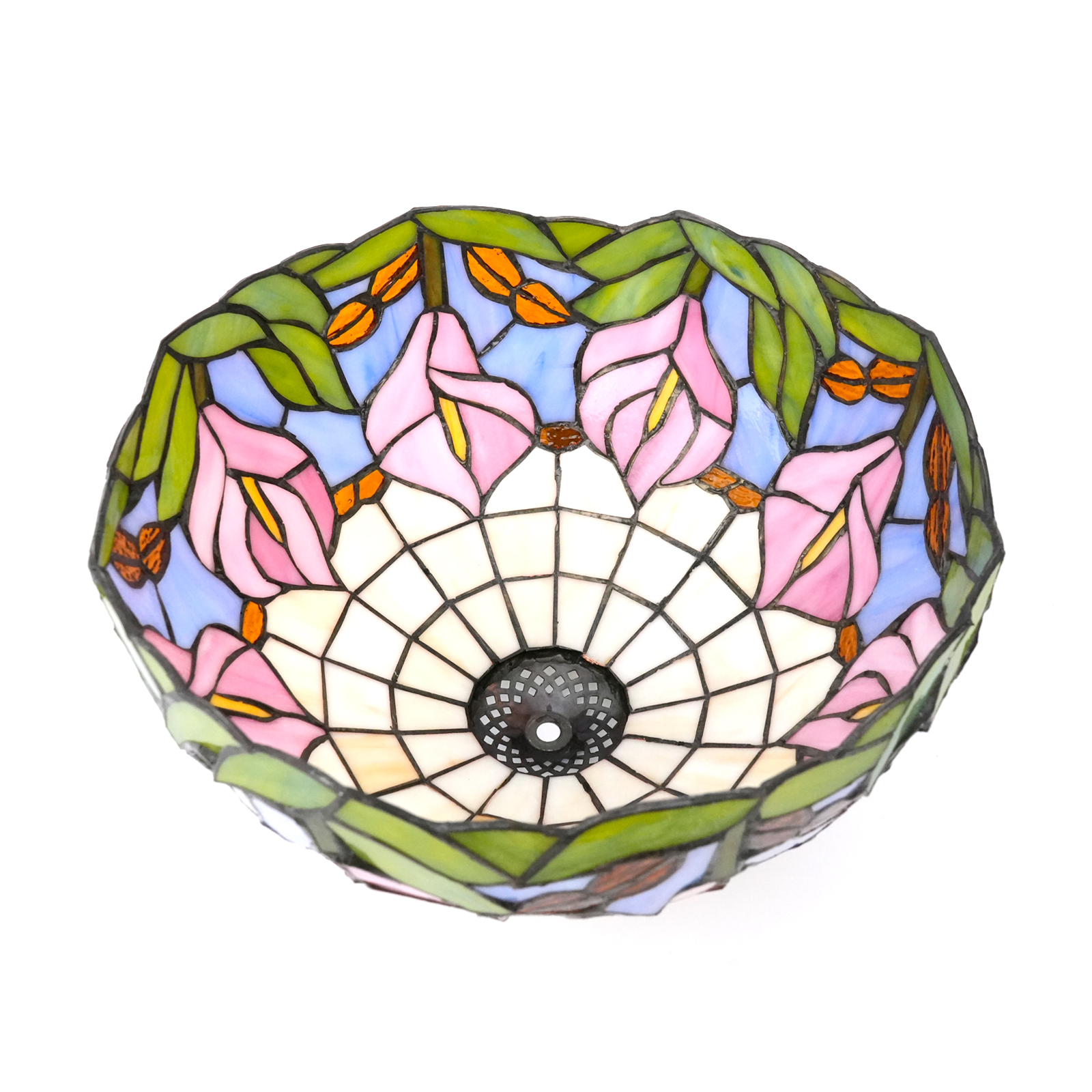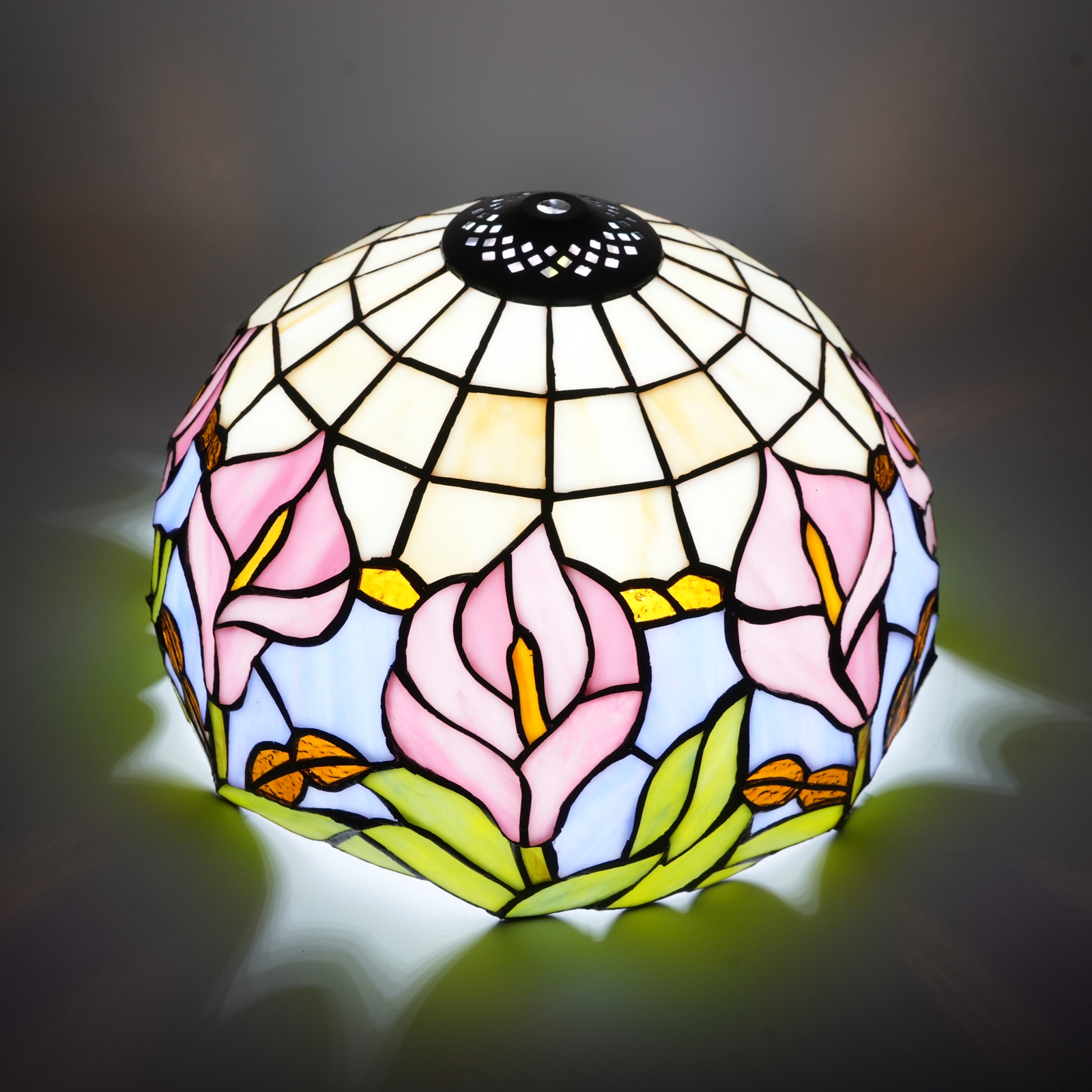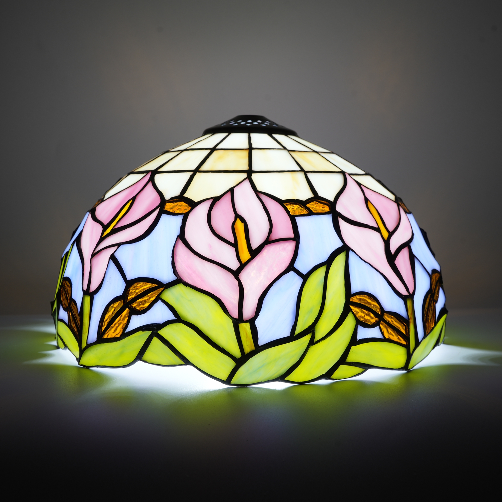 12-inch Tiffany pink and blue calla lily glass lampshade: Romantic flower language, illuminating an artistic home