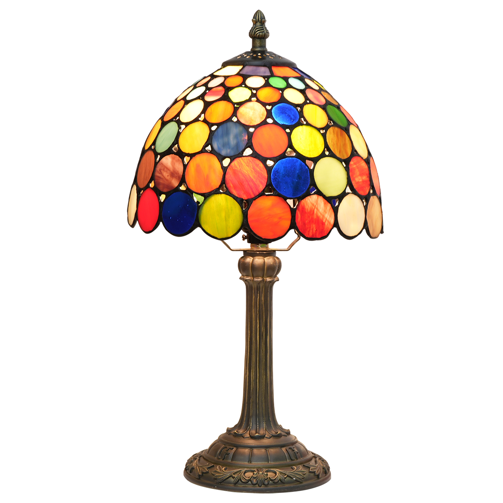 Blivuself Tiffany Stained Glass Red Multicoloured Round Table Lamp Bedroom Bedside Reading Lamp Office Dorm Bar Vintage Style Decor Unique Lovely Cottage 8 Inch Country Nightstand Lamp 8 Inches Dazzling Wafer Table Lamp OFU983