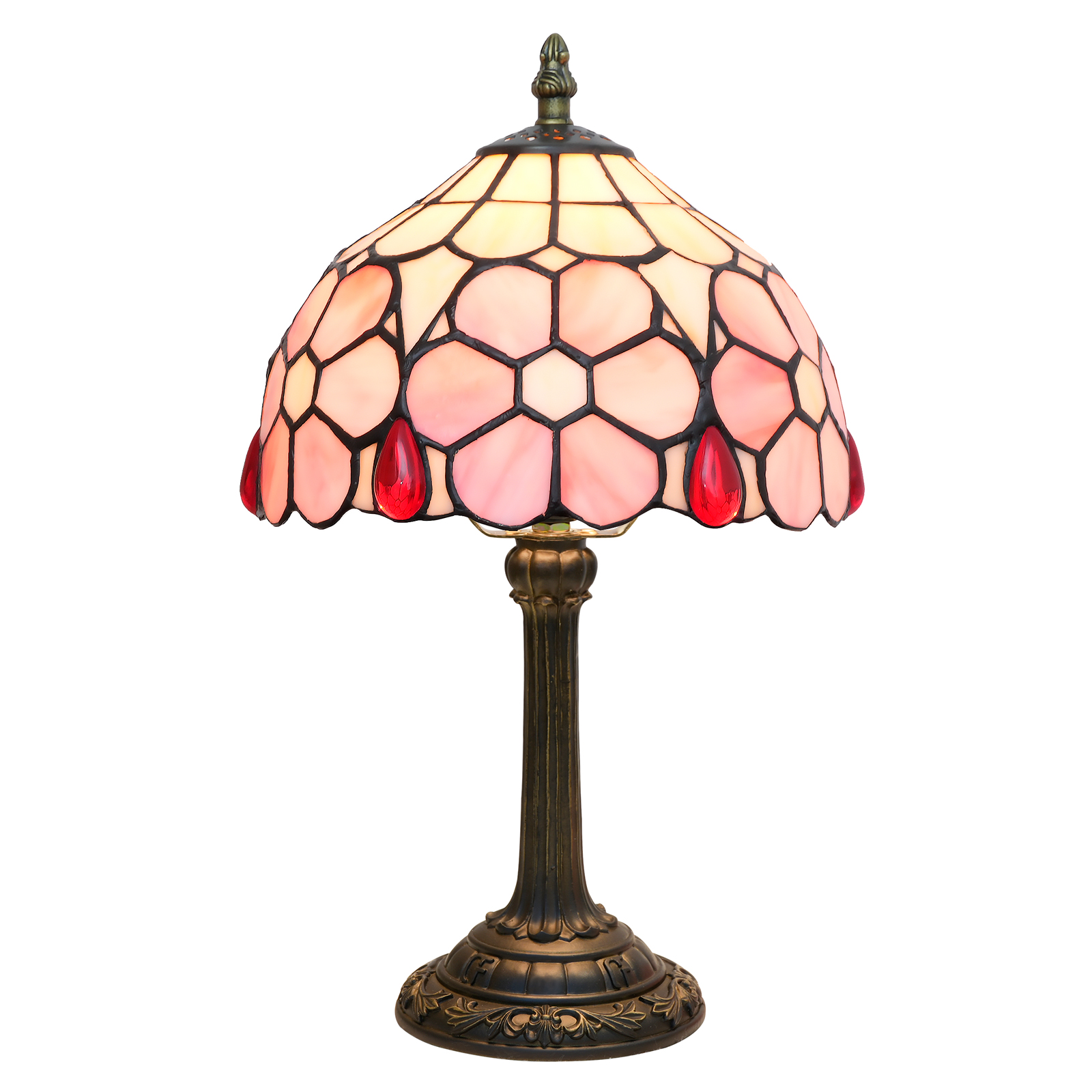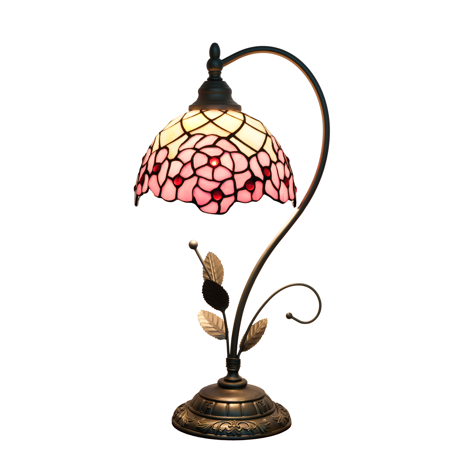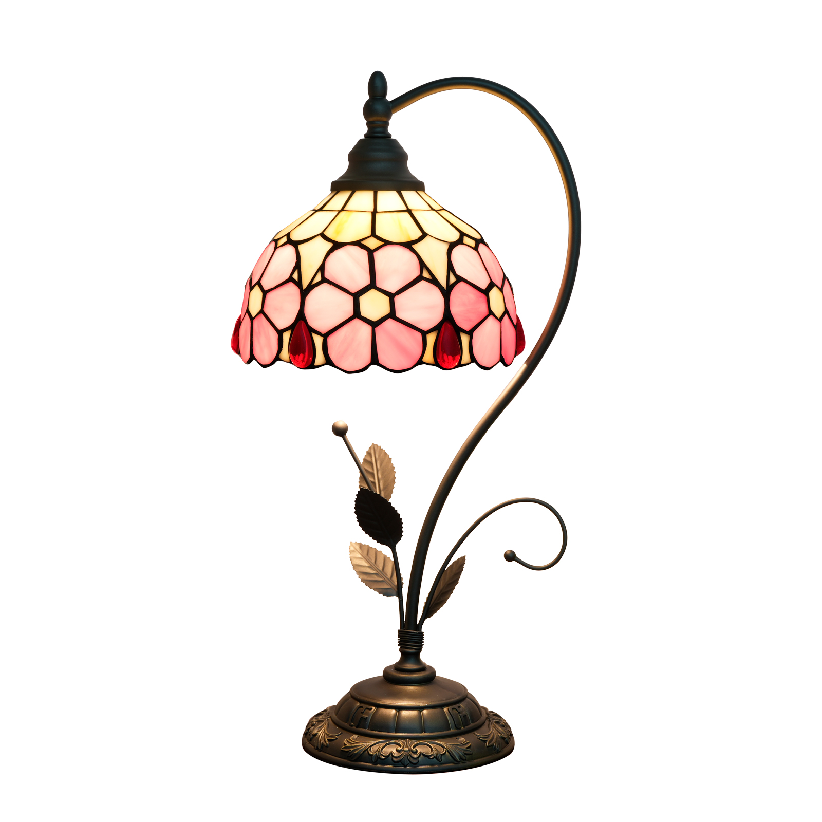 Blivuself Tiffany Lamp 8 Inch Stained Glass Table Lamp Pink Flowers Warm Color Reading Lamp Suitable For Bedrooms Dormitory Dining Room And Other Tiffany Retro Style Classical Art Home Decoration Art(OFU1285)