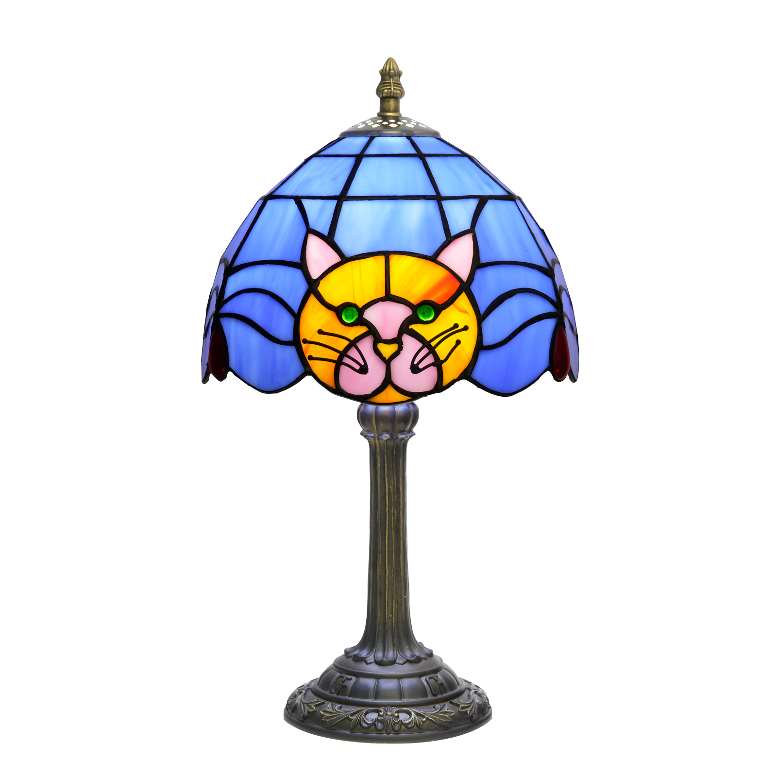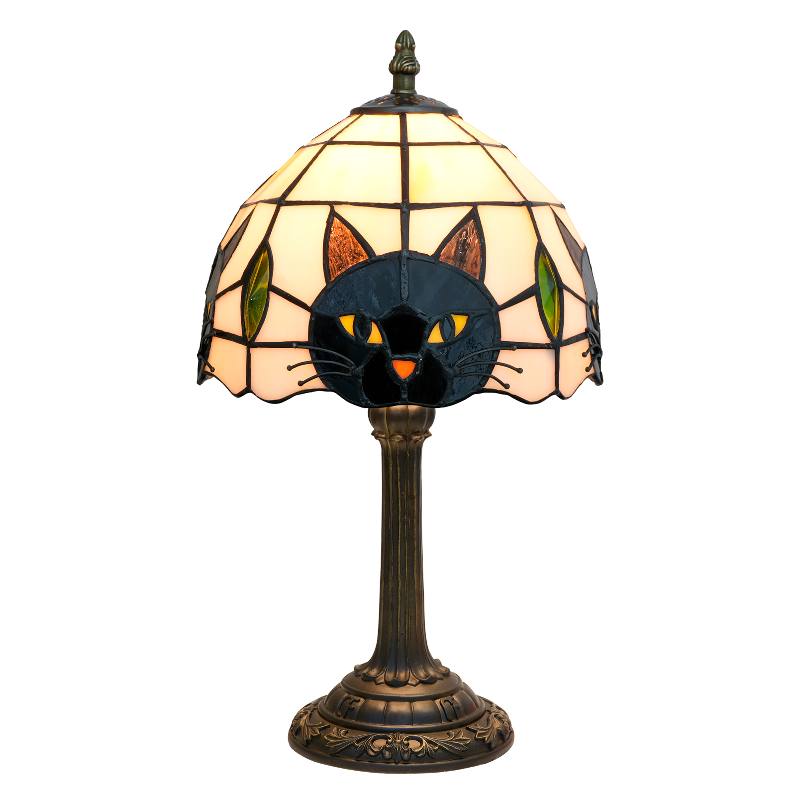 Blivuself The Tiffany Style Black Cat Table Lamp Brings Retro Cuteness Into Life. The Handcrafted 8-Inch Stained Glass Lampshade Is Suitable For Home Decoration Art Such As Dormitories, Bedrooms And Desks(OFU1244)
