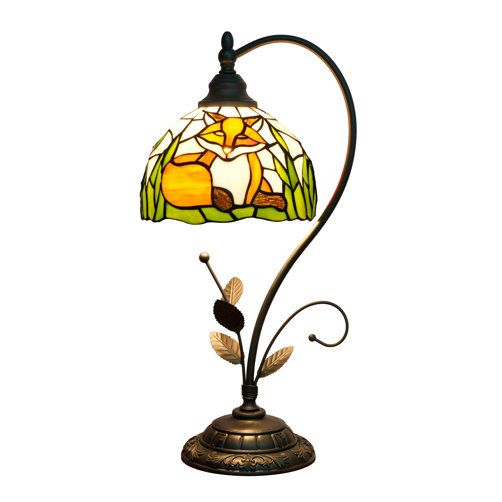 Blivuself Tiffany Lamp 8 Inch Orange Fox Stained Glass Table Lamp Retro Hand Warm Color Reading Table Lamp Suitable For Bedroom Living Room Bedside Office Study Classical Art Home Decoration(OFU1298)