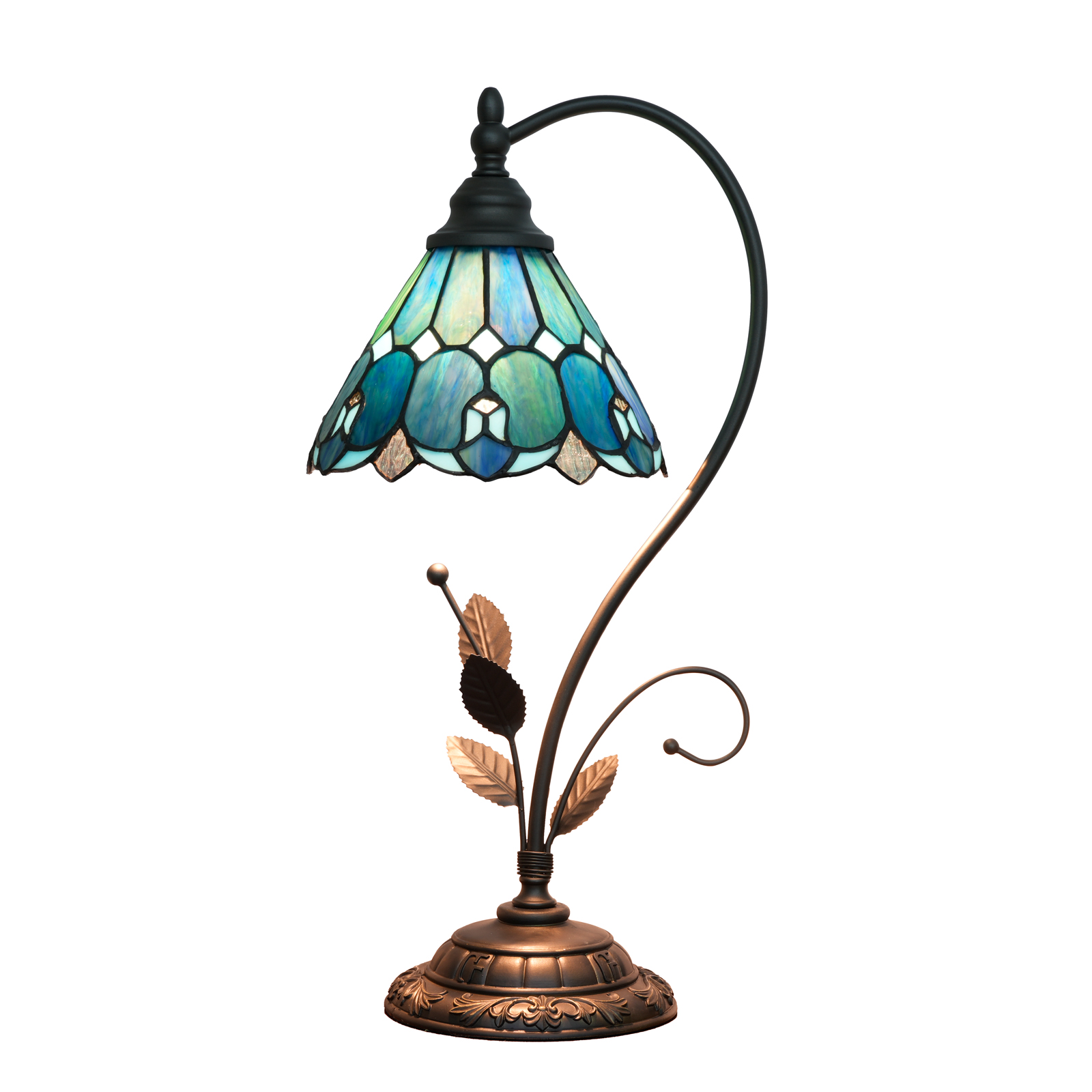 Blivuself Tiffany Lamp Light Luxury Style 8 Inch Lamp Blue Love Handmade Stained Glass Lamp Shade, Suitable For Bedroom Living Room Study Dining Room, European Vintage Style Home Decoration 8 Inch Blue Love -Of Bronze Lamp OFU967