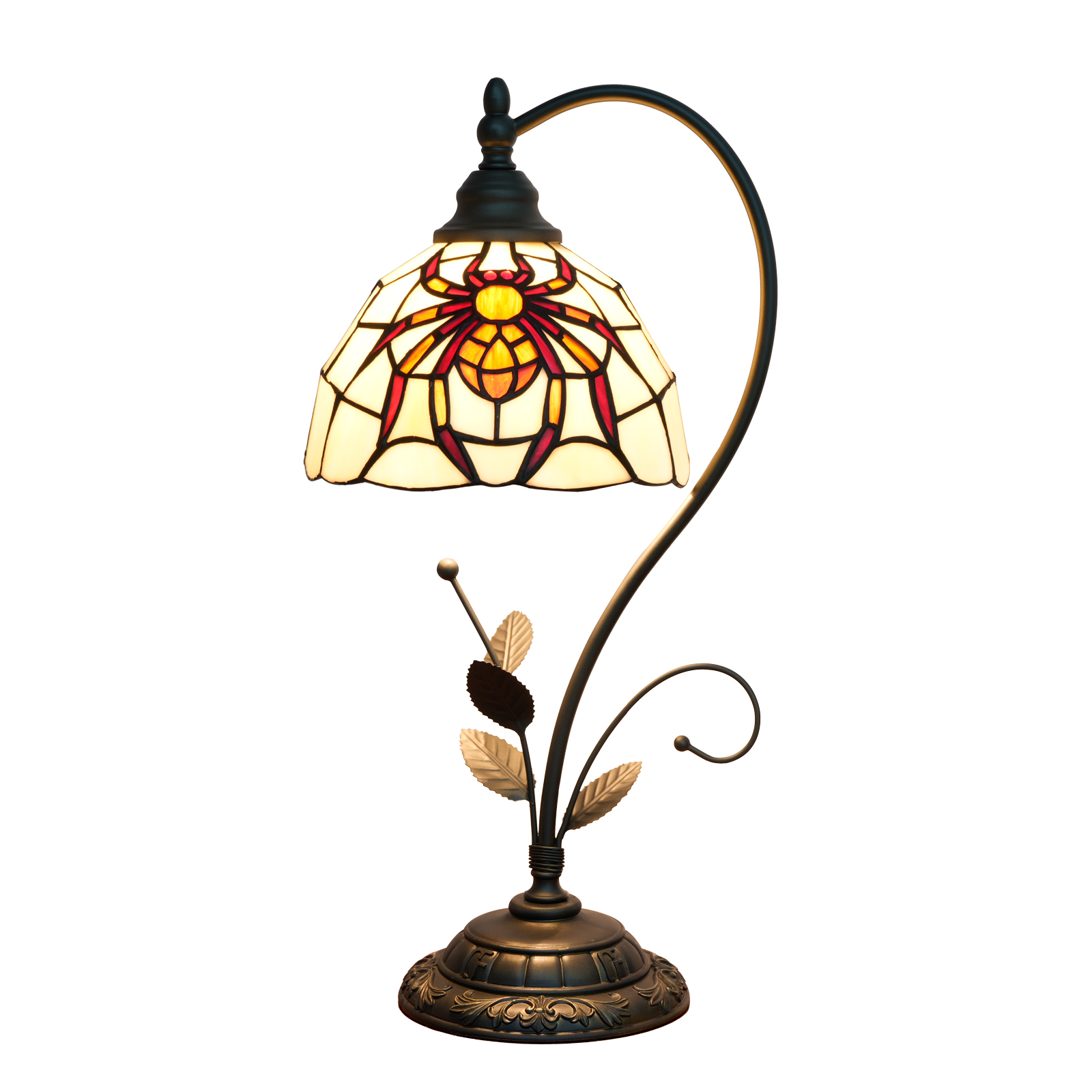 Blivuself Tiffany Table Lamp 8 Inch Stained Glass Table Lamp Red Spider Warm Color Reading Lamp For Bedroom Dormitory Dining Room Study Tiffany Retro Style Classical Art Home Decoration Art Crafts(OFU1304)