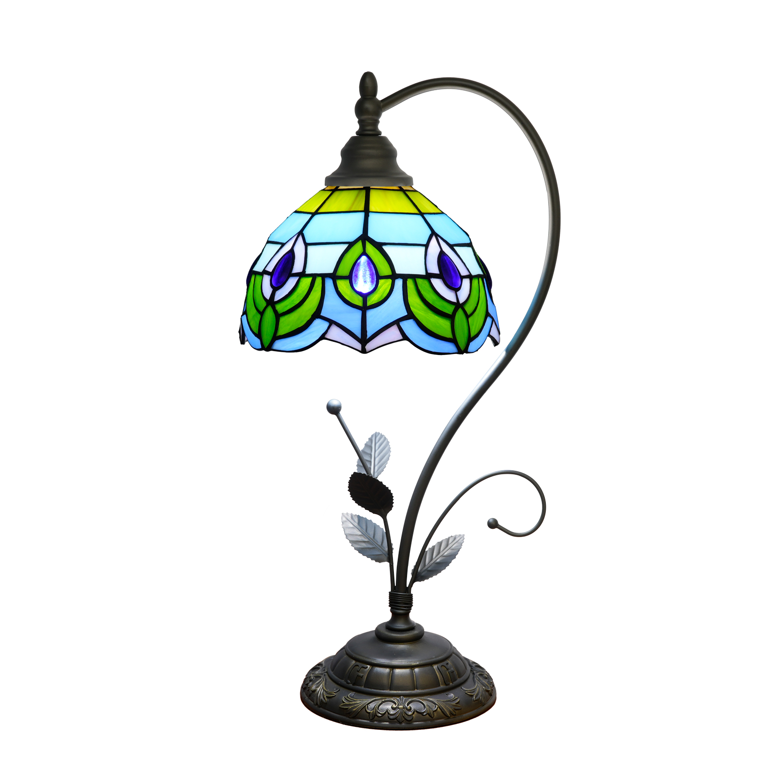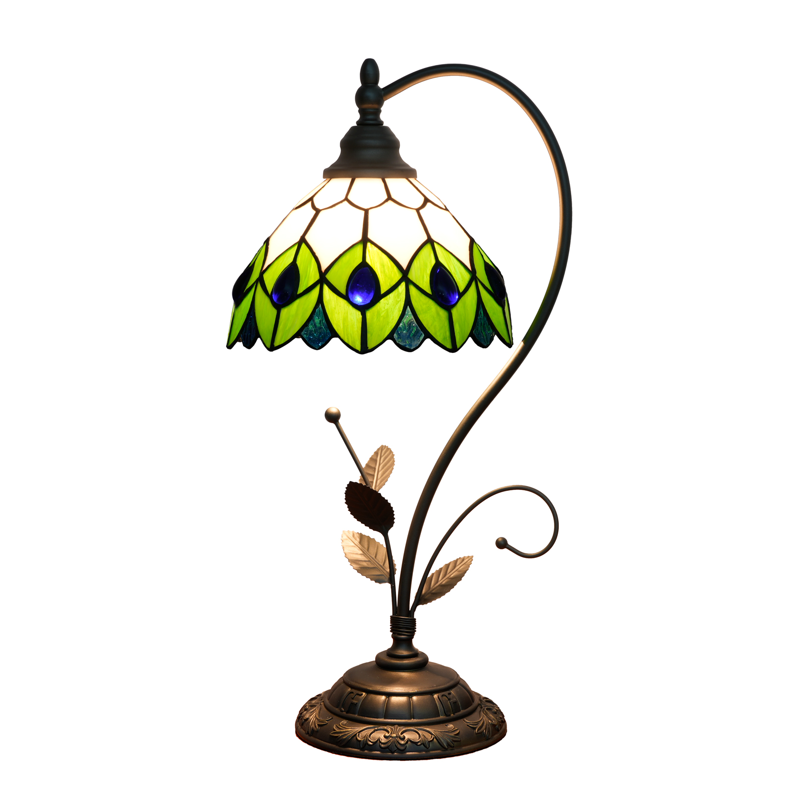 Blivuself Tiffany Table Lamp 8 Inch Stained Glass Table Lamp Green White Peacock Tail Warm Color Reading Lamp For Bedroom Dormitory Dining Room Living Room Study Tiffany Retro Style Classical Art Home Decoration Art Crafts(OFU1305)