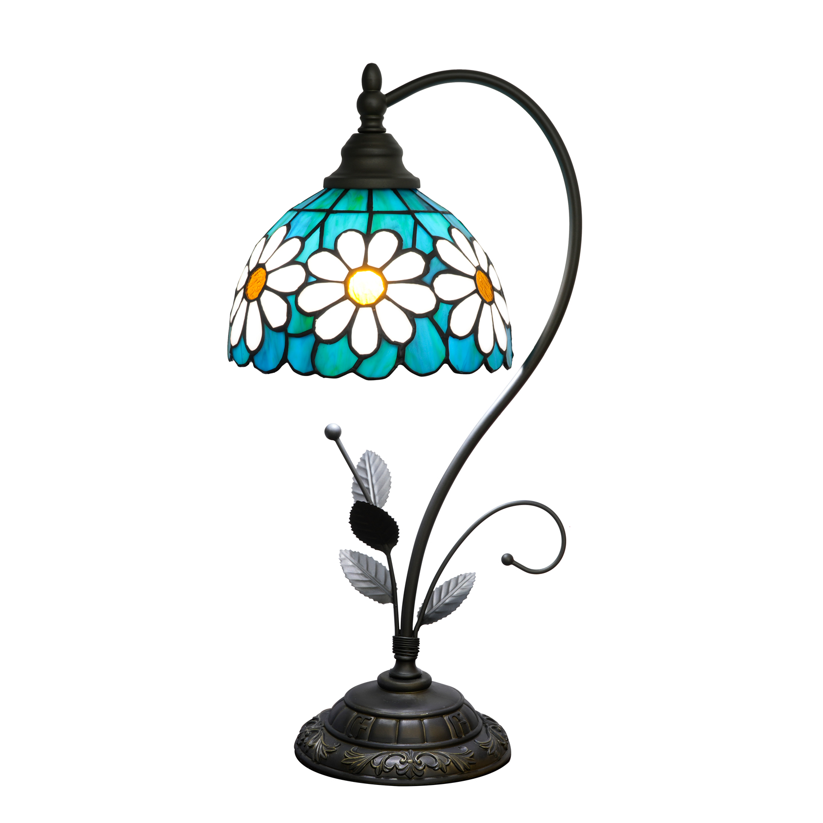 Blivuself Tiffany Table Lamp 8 Inch Stained Glass Table Lamp Blue Bottom White Chrysanthea Classical Art Warm Color Reading Lamp For Bedroom Dormitory Dining Room Study Tiffany Retro Style Home Decoration Art Crafts(OFU1312)