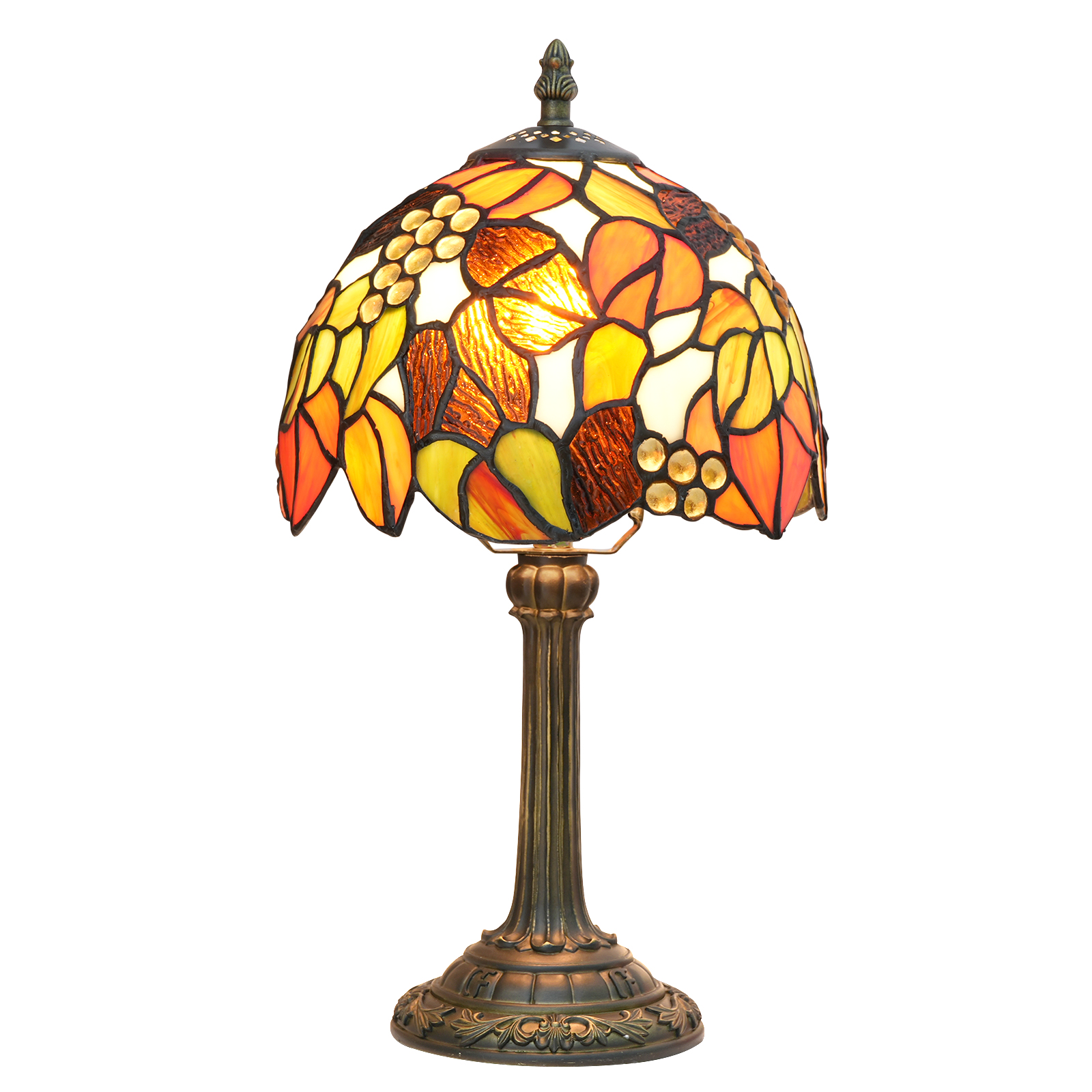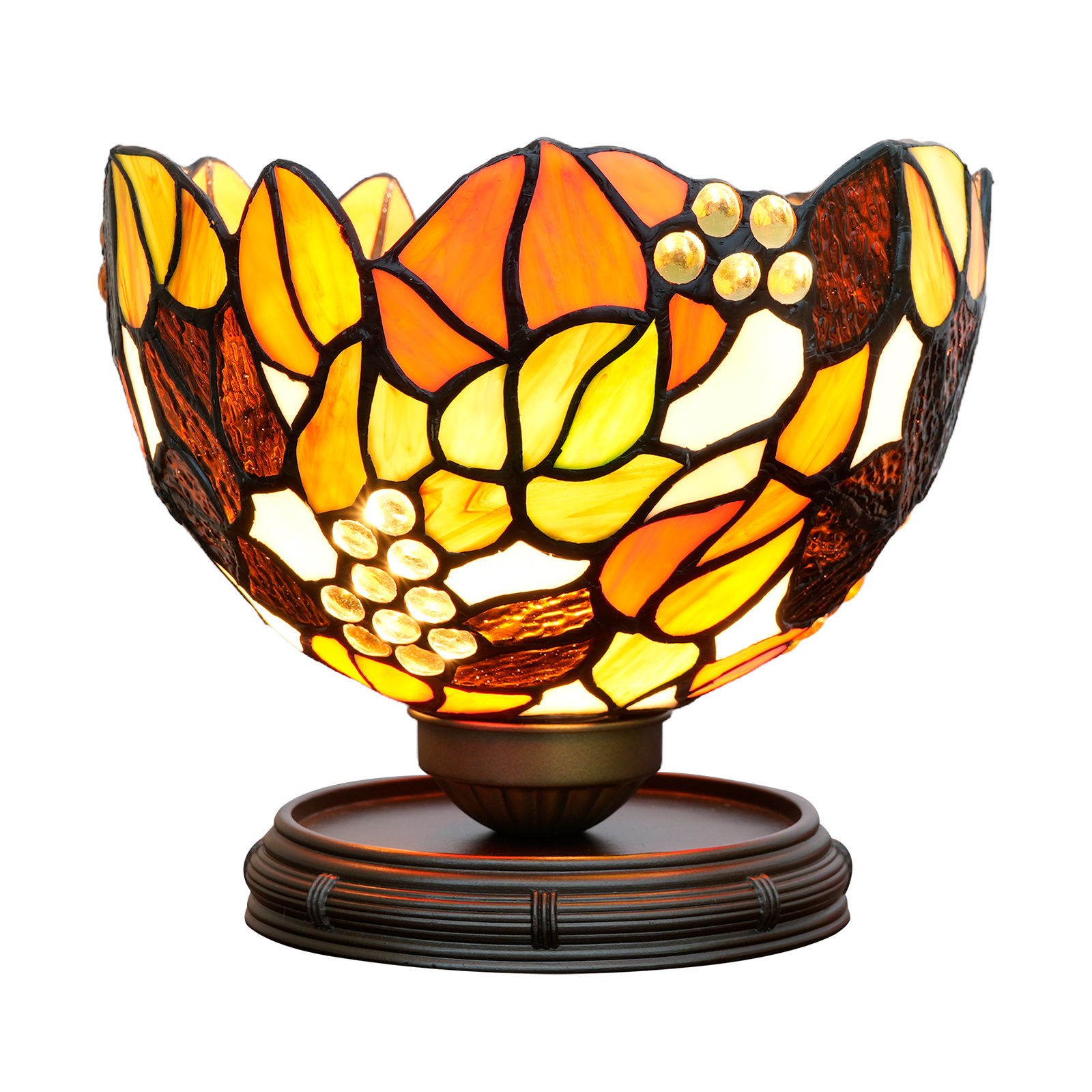 Blivuself Tiffany Stained Glass Brown Maple Leaf Grape Lamp Bedroom Bedside Reading Lamp Office Dorm Bar Romantic Retro Style Decor Unique Lovely Cottage 8 Inch Country Nightstand Lamp 8 Inch Maple Leaf Grape Lamp OFU1175
