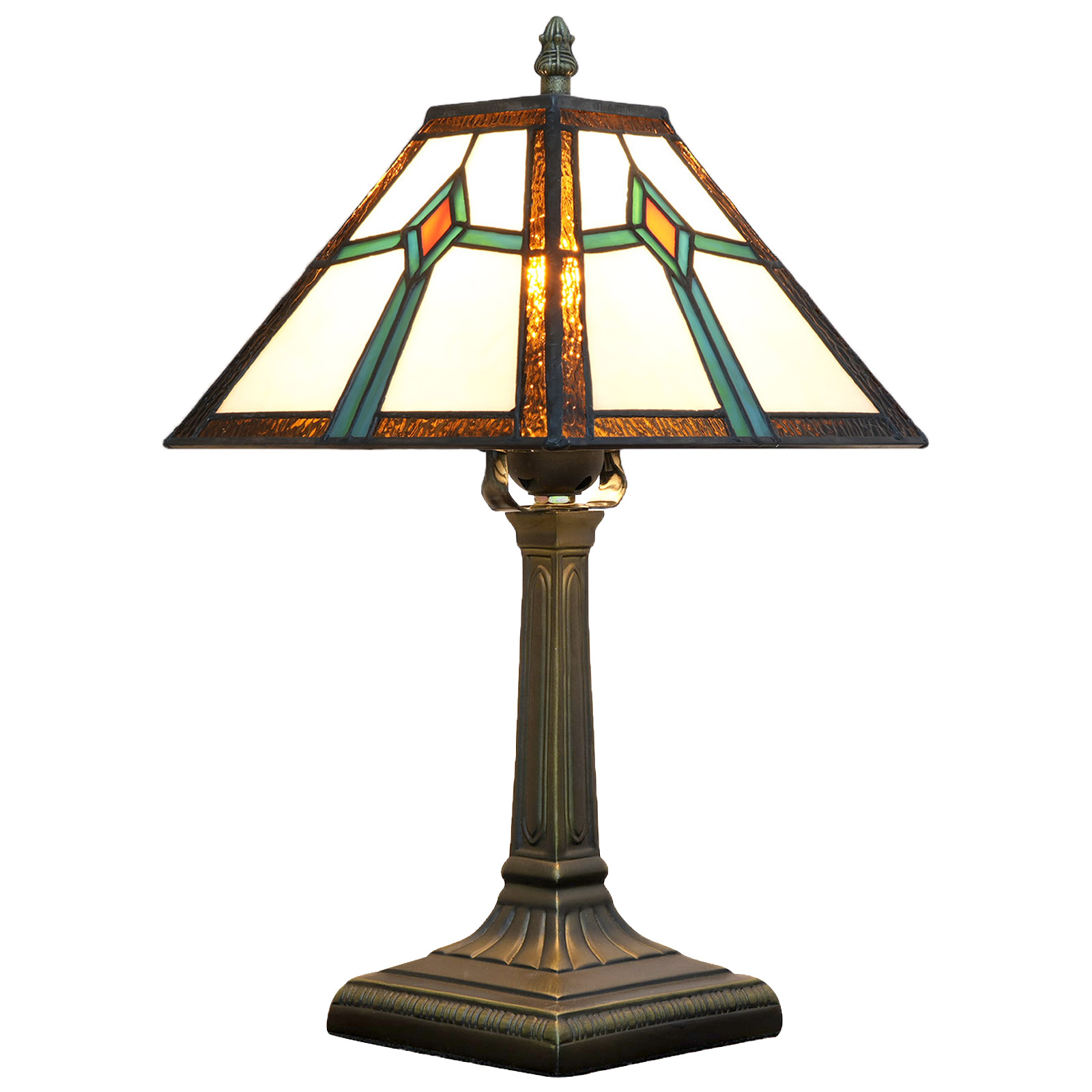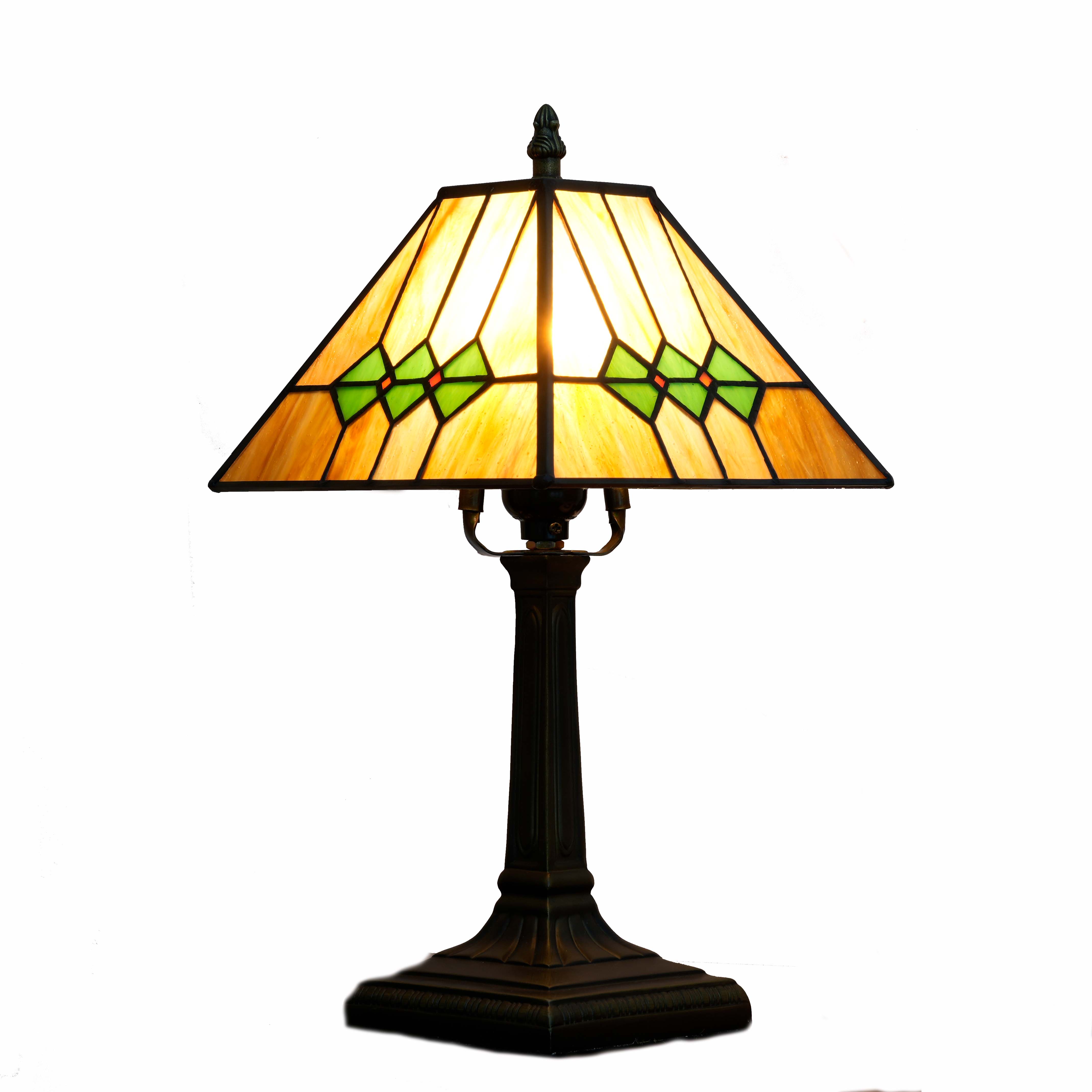 Blivuself Tiffany Table Lamp European Retro Style 8-Inch Green Diamond Yellow Bottom Square Hand-Made Stained Glass Lamp Shade, Classical Style Home Decoration, Suitable For Bedroom Living Room Office, 8-Inch Green Yellow Square Desk Lamp OFU1203