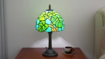Inspired by the tropical turtle-back bamboo, the blue-green gradient background is like a secret realm in the forest. The emerald green leaves are layered and spread out, complemented by brown vines entwining and embellishing, presenting a vibrant natural picture. Each piece of colored glass is hand-cut and inlaid by artisans, and the interplay of light and shadow exudes a unique Tiffany artistic atmosphere.