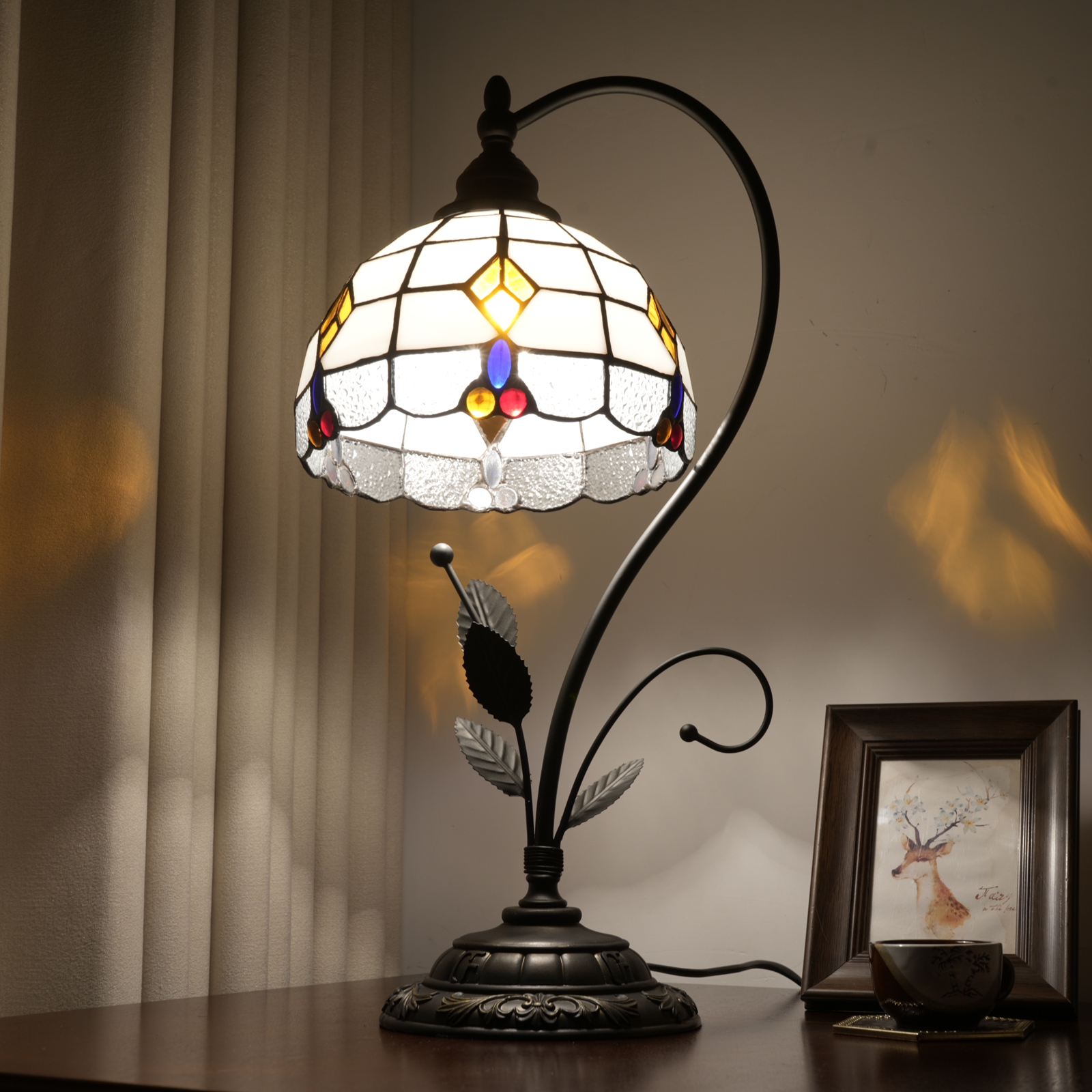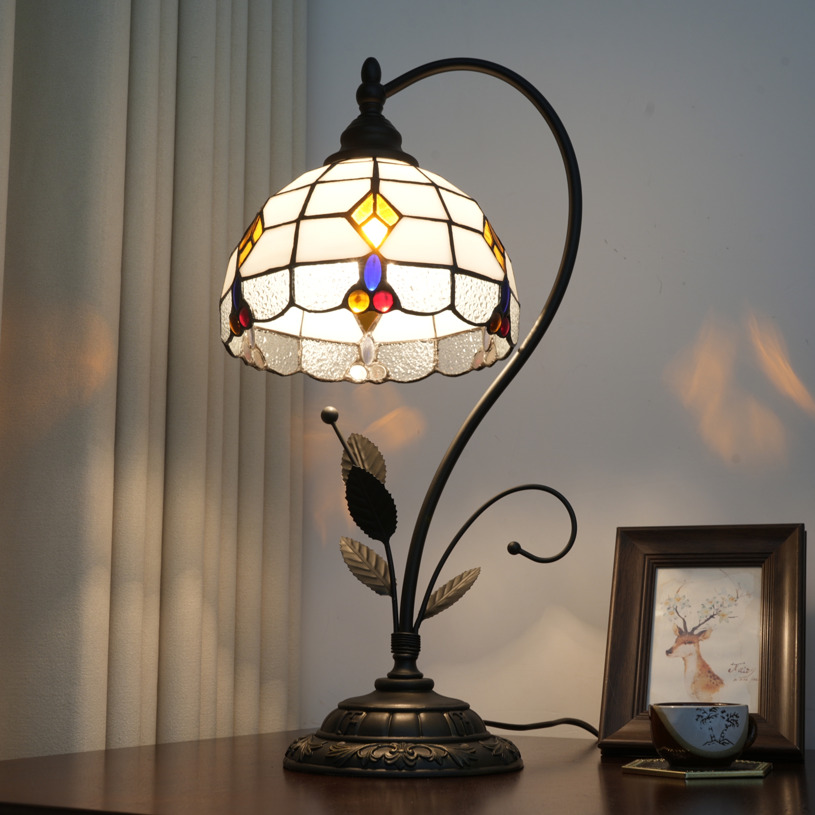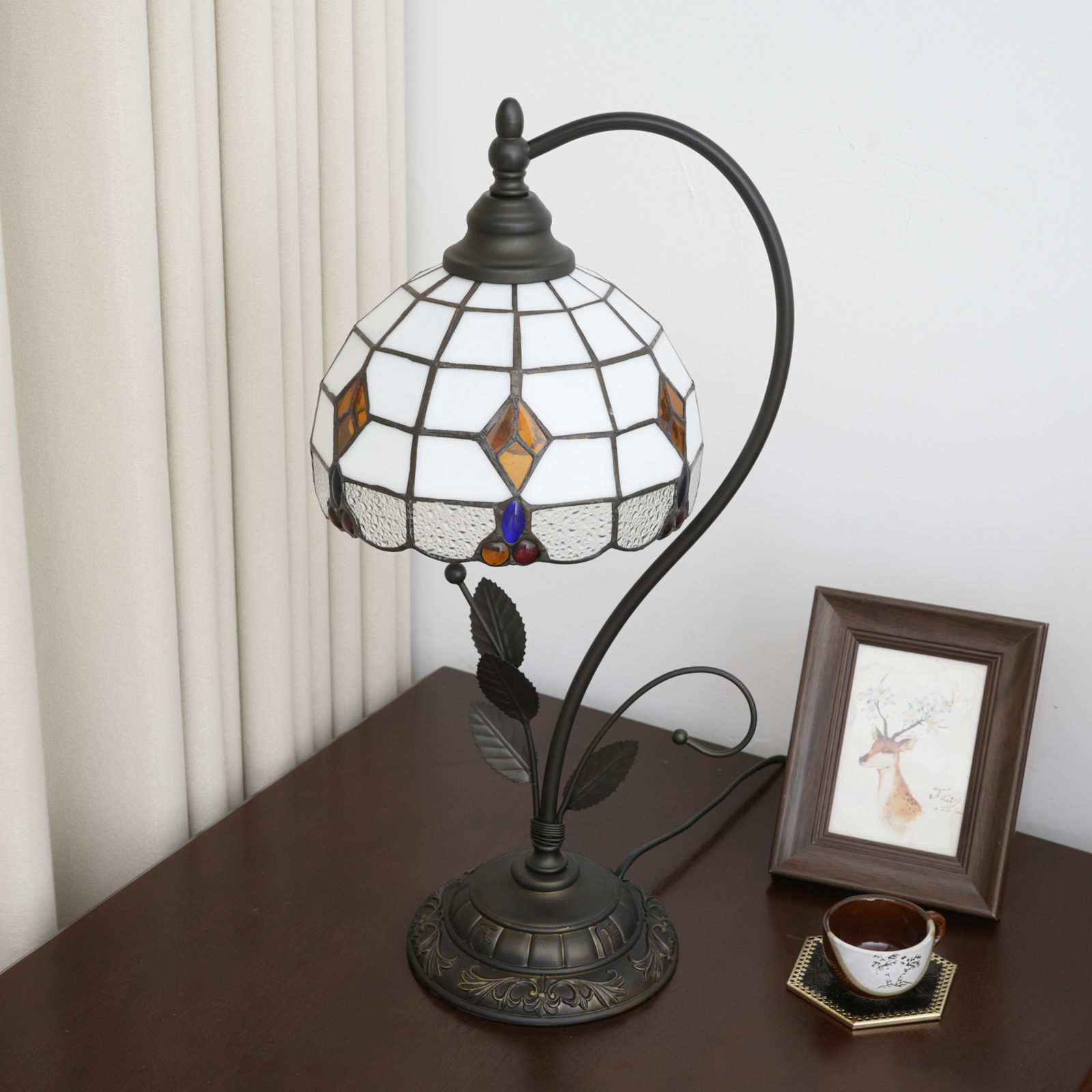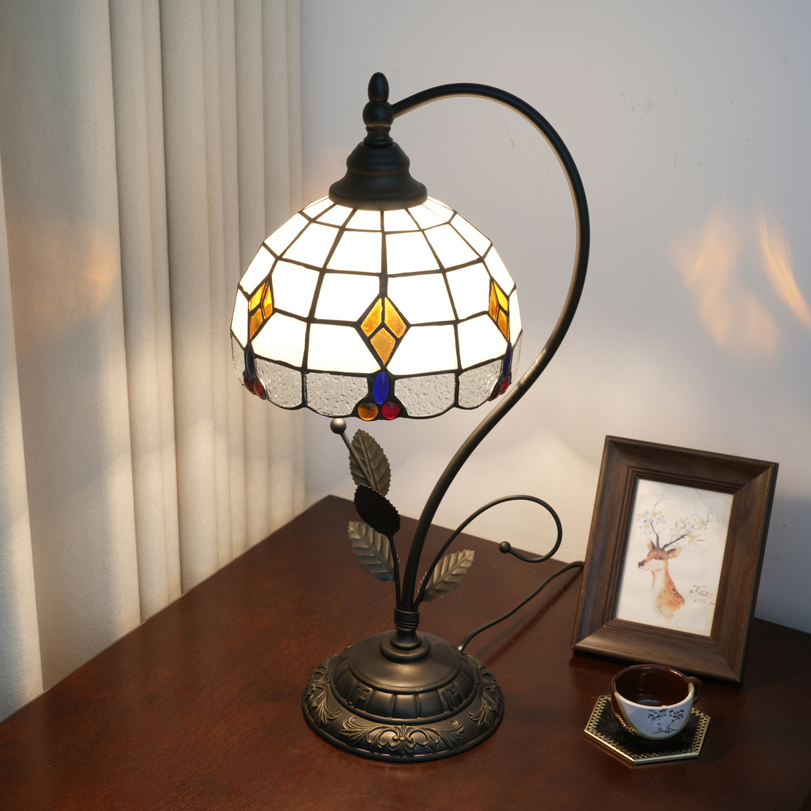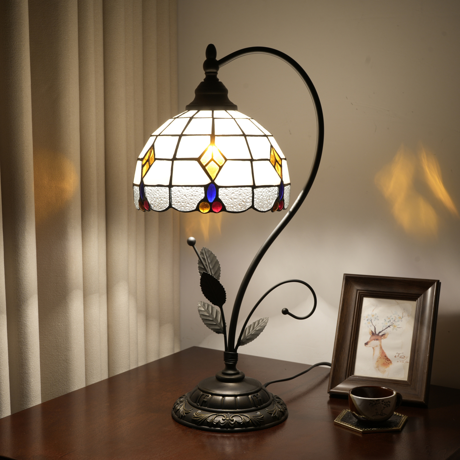 When the warm light penetrates the lampshade, the white base casts a soft glow. The yellow, orange, blue and red of the diamond-shaped colored glass dance like artistic light spots in the space. In the study, it is the "geometric art lamp" on the desk, making the reading time combine retro elegance with modern design sense. In the bedroom, the diamond-shaped illusions in the warm light are dreamlike and illusory, setting a gentle atmosphere for the bedside. Even as a home decoration item, the collision of its handcrafted colored glass and diamond-shaped patterns can become the visual focus of the space, easily adapting to retro, light luxury or modern minimalist styles.