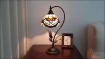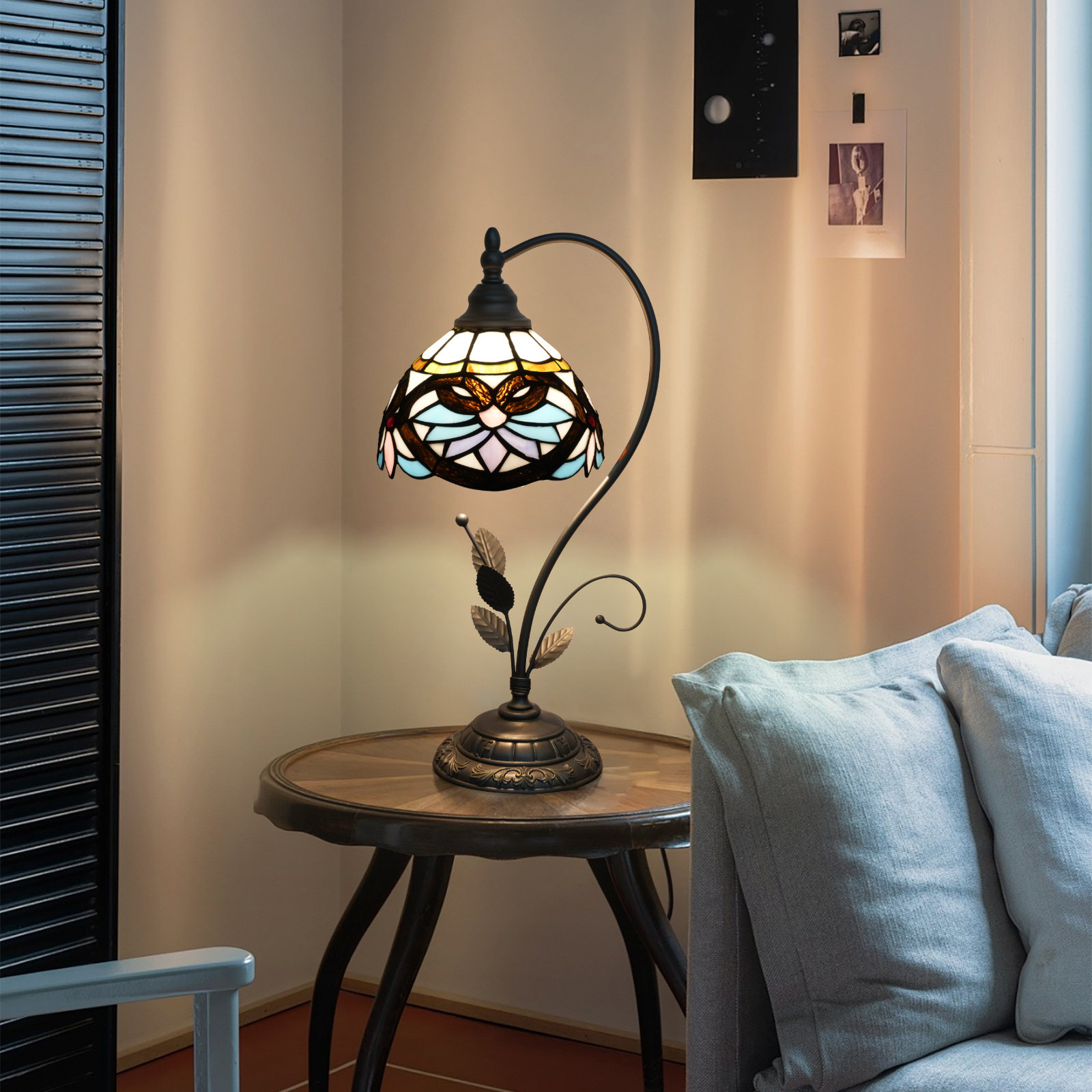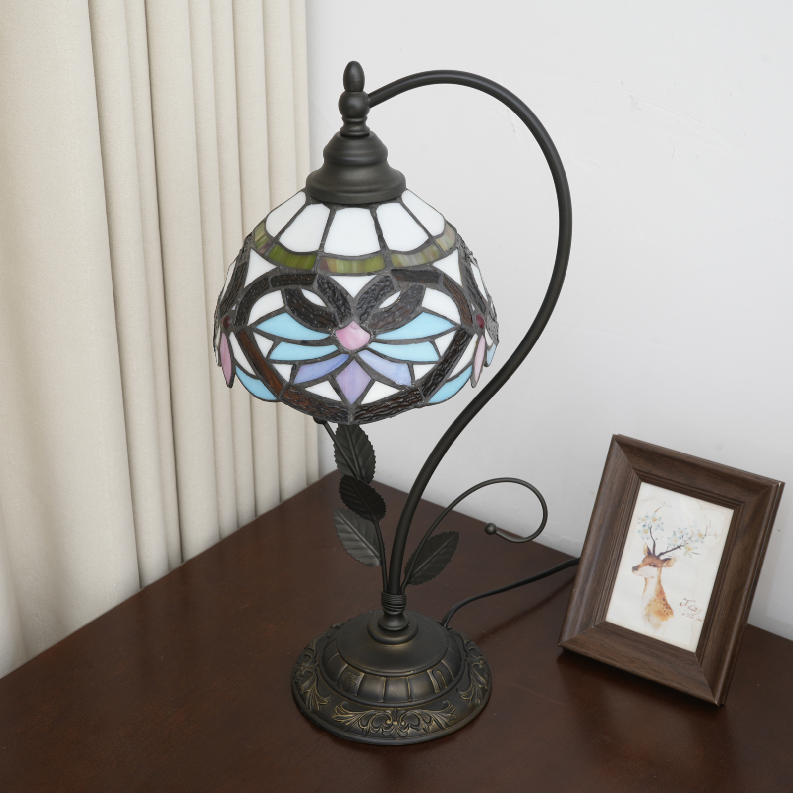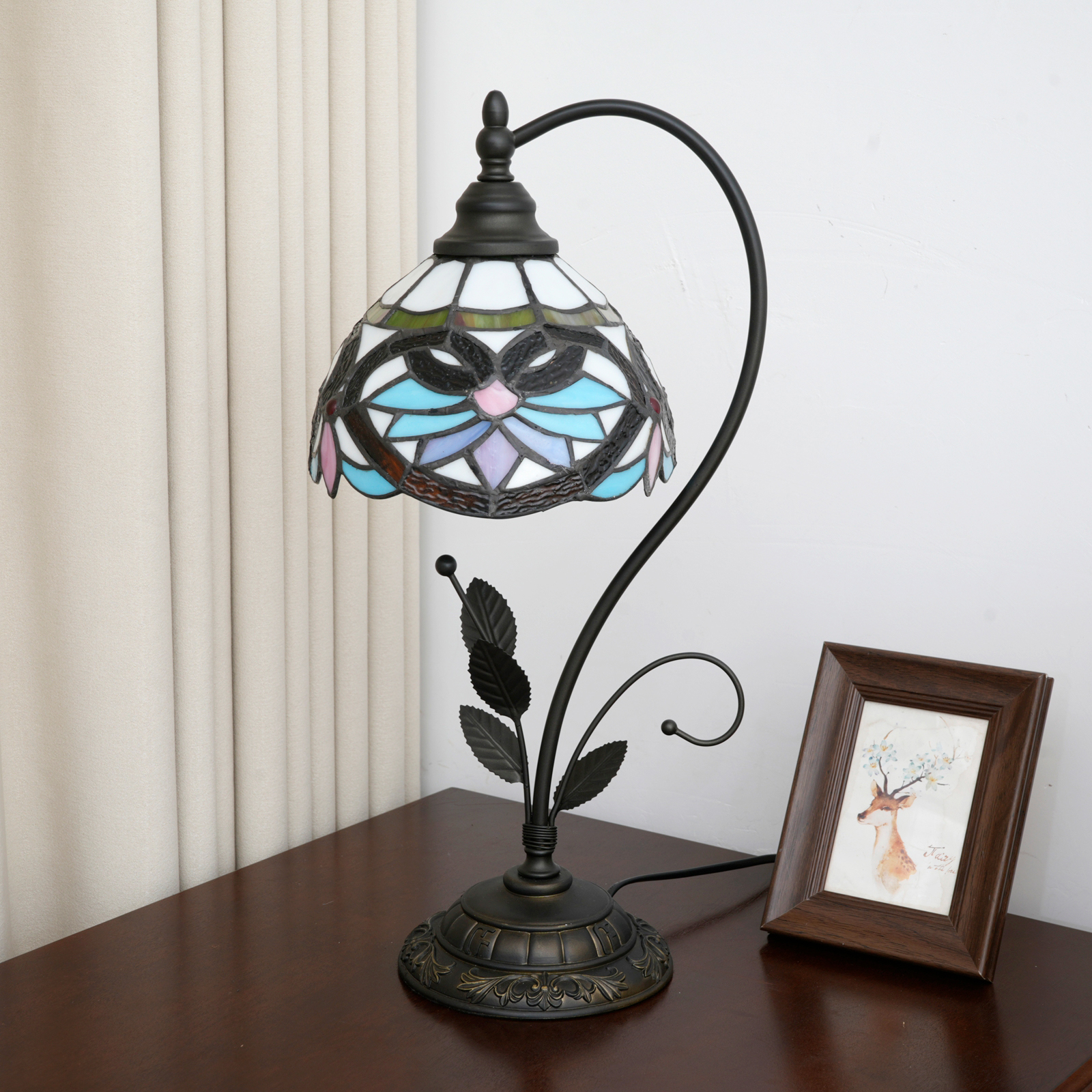 8 inch blue love stained glass table lamp: a retro warm light poem in the art pattern