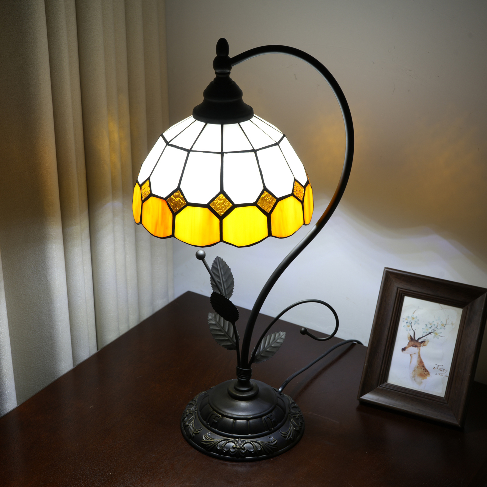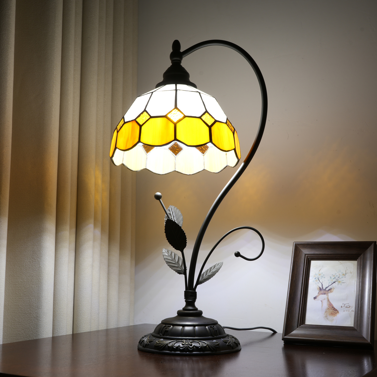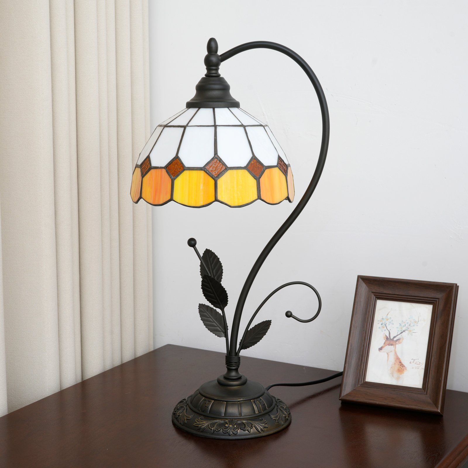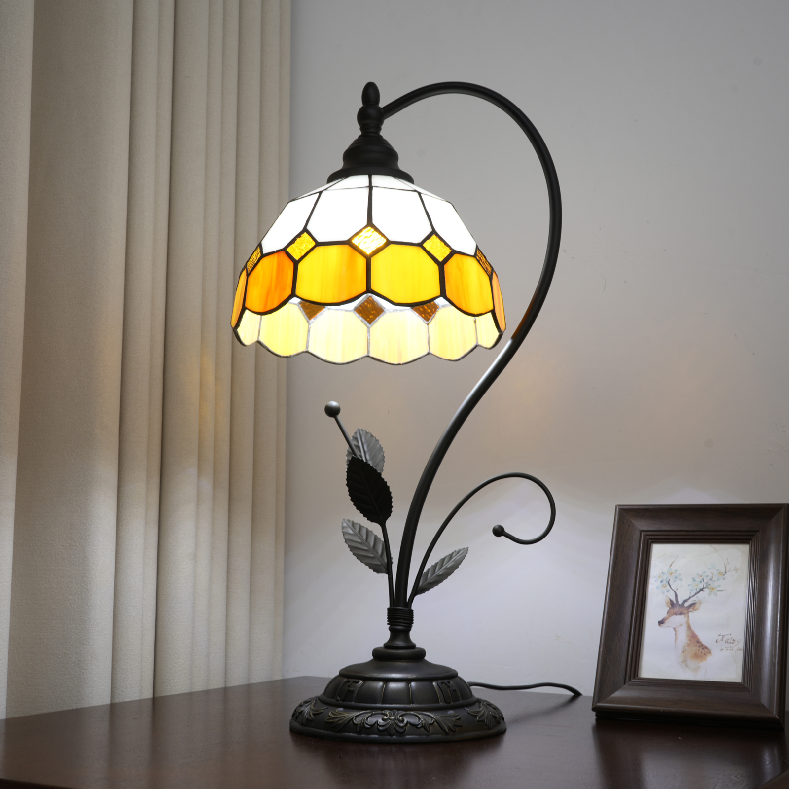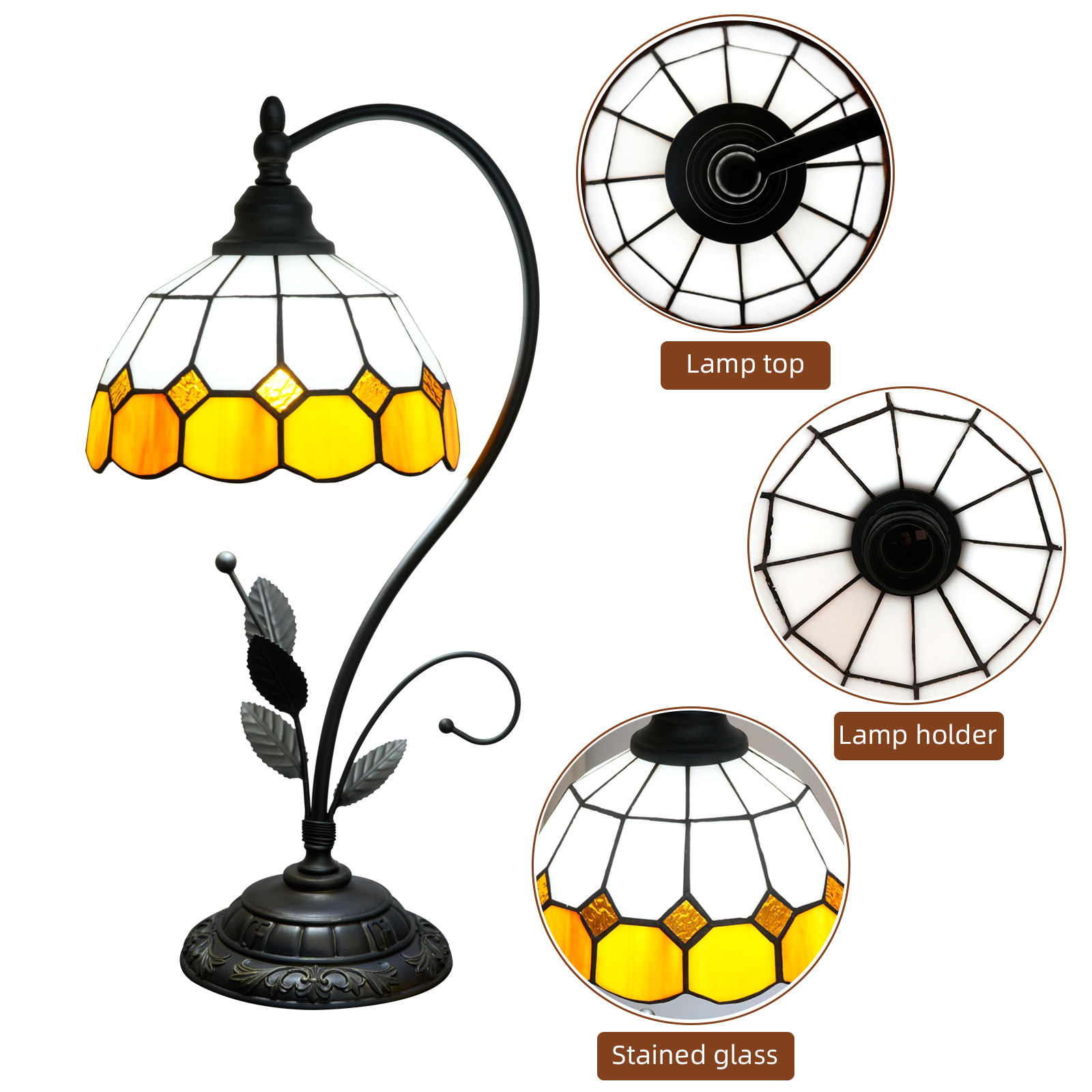 Blivuself Tiffany Table Lamp Stained Glass Lamp Yellow And White Lattice Retro Bedside Lamp Bedroom Dormitory Study Dining Room Retro Home Decoration Classical Art (8 Inch OFU1370)