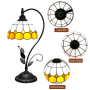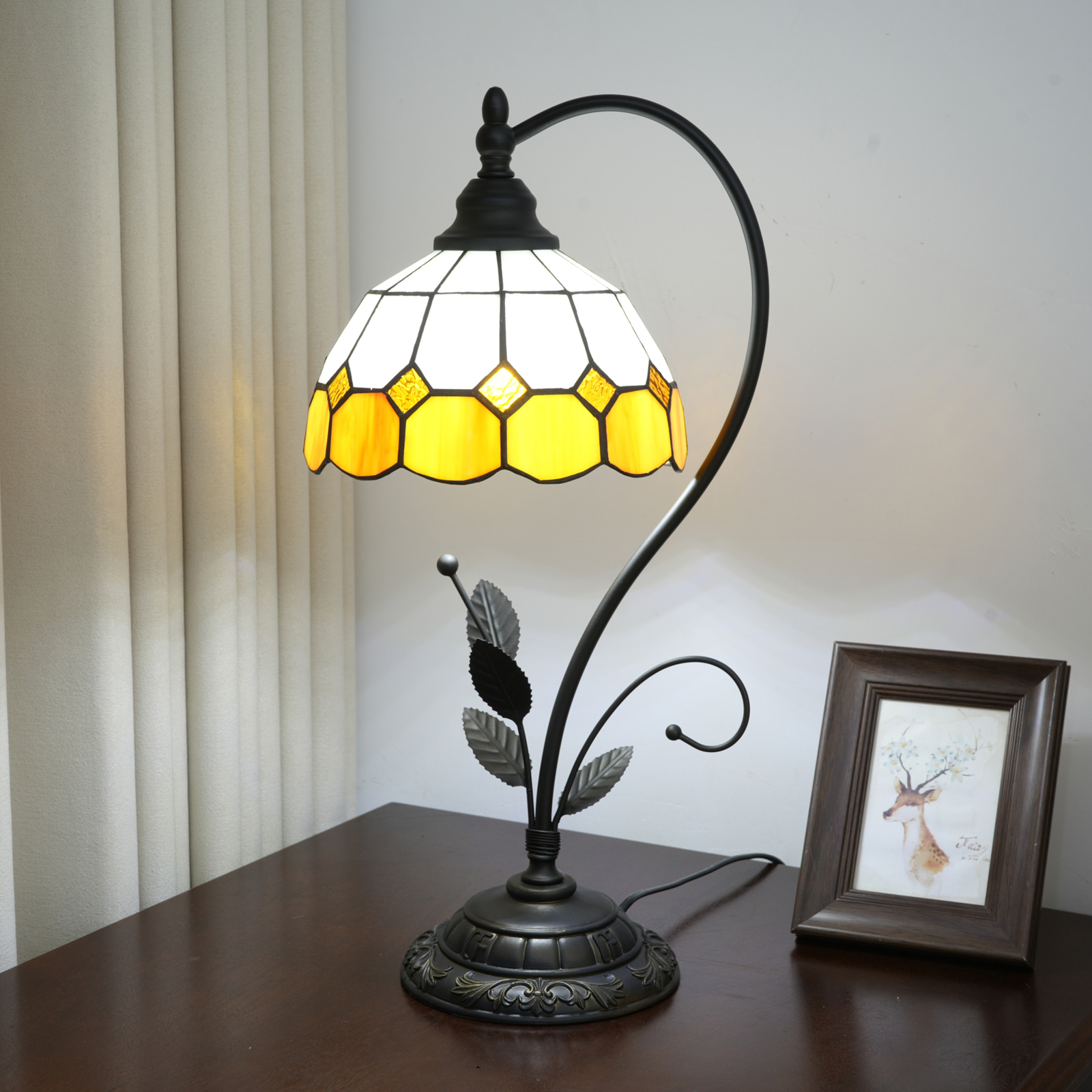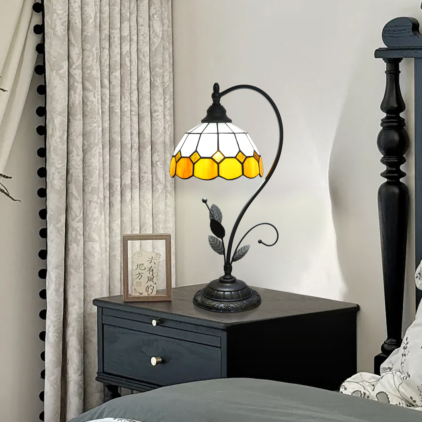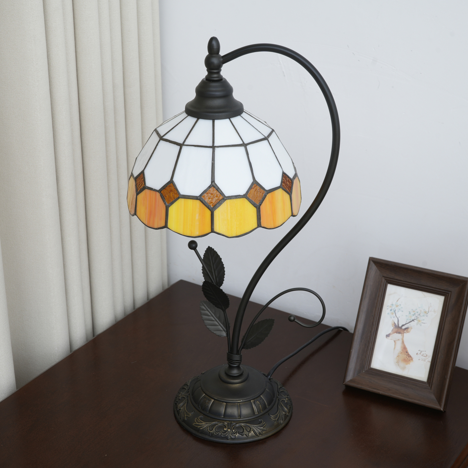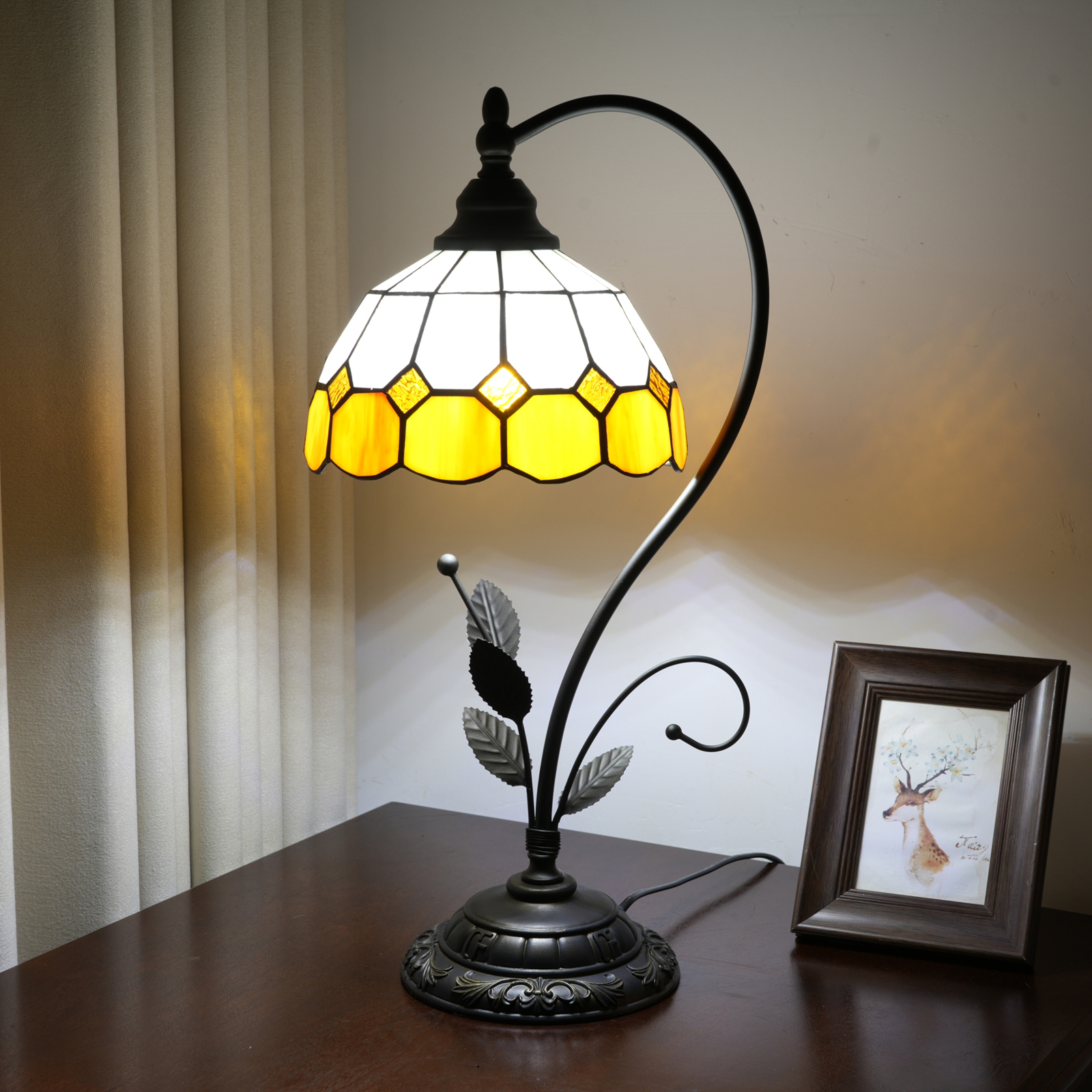 Blivuself Tiffany Table Lamp Stained Glass Lamp Yellow And White Lattice Retro Bedside Lamp Bedroom Dormitory Study Dining Room Retro Home Decoration Classical Art (8 Inch OFU1370)