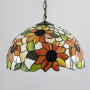 Blivuself Tiffany Style Stained Glass 16-Inch Orange Sunflower Pattern Chandelier European And American Retro Style Suitable For Living Room, Dining Room, Bedroom, Bar And Other Indoor Home Decoration 16-Inch Sunflower - Regular Single Chain Chandelier OFP1076