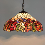 Blivuself Tiffany Style Stained Glass 16-Inch Red Chandelier Europe And The United States Retro Pastoral Style Suitable For Living Room, Dining Room, Bedroom, Bar And Other Indoor Home Decoration 16 Inch Line Lotus - Conventional Single Chain Chandelier OFP1083