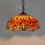 Blivuself Tiffany Style Stained Glass 16-Inch Red Chandelier European And American Retro Garden Style Suitable For Living Room, Dining Room, Bedroom, Bar And Other Indoor Home Decoration 16-Inch Red Dragonfly - Conventional Single Chain Chandelier OFP1088