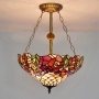 Blivuself Tiffany Style Stained Glass 16 Inch Red Upward Chandelier European And American Retro Casual Style Suitable For Living Room, Dining Room, Bedroom, Bar And Other Indoor Home Decoration 16 Inch Clematis - Regular Anti-Chandelier OFP1102