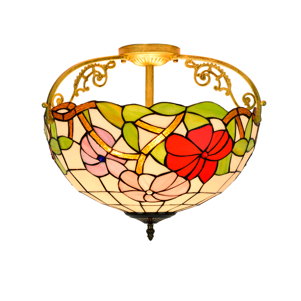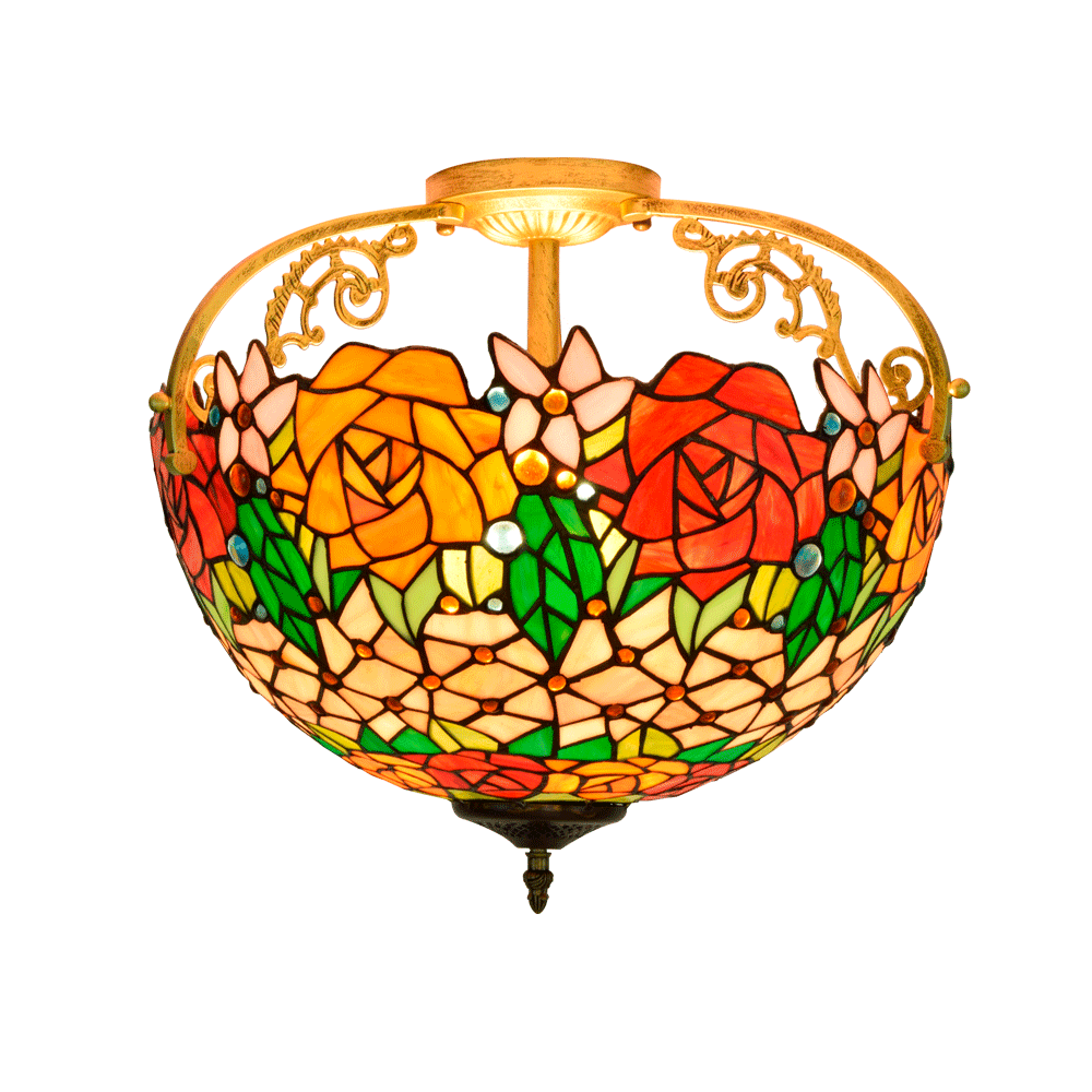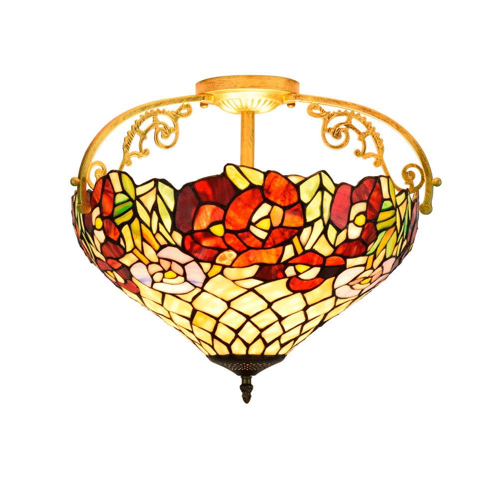 Blivuself Tiffany Style Stained Glass 16 Inch Beige Full Ceiling Light European And American Retro Style, Suitable For Living Room, Dining Room, Bedroom, Bar And Other Indoor Home Decoration 16 Inch Gorgeous Rose - Full Ceiling Light OFC6016
