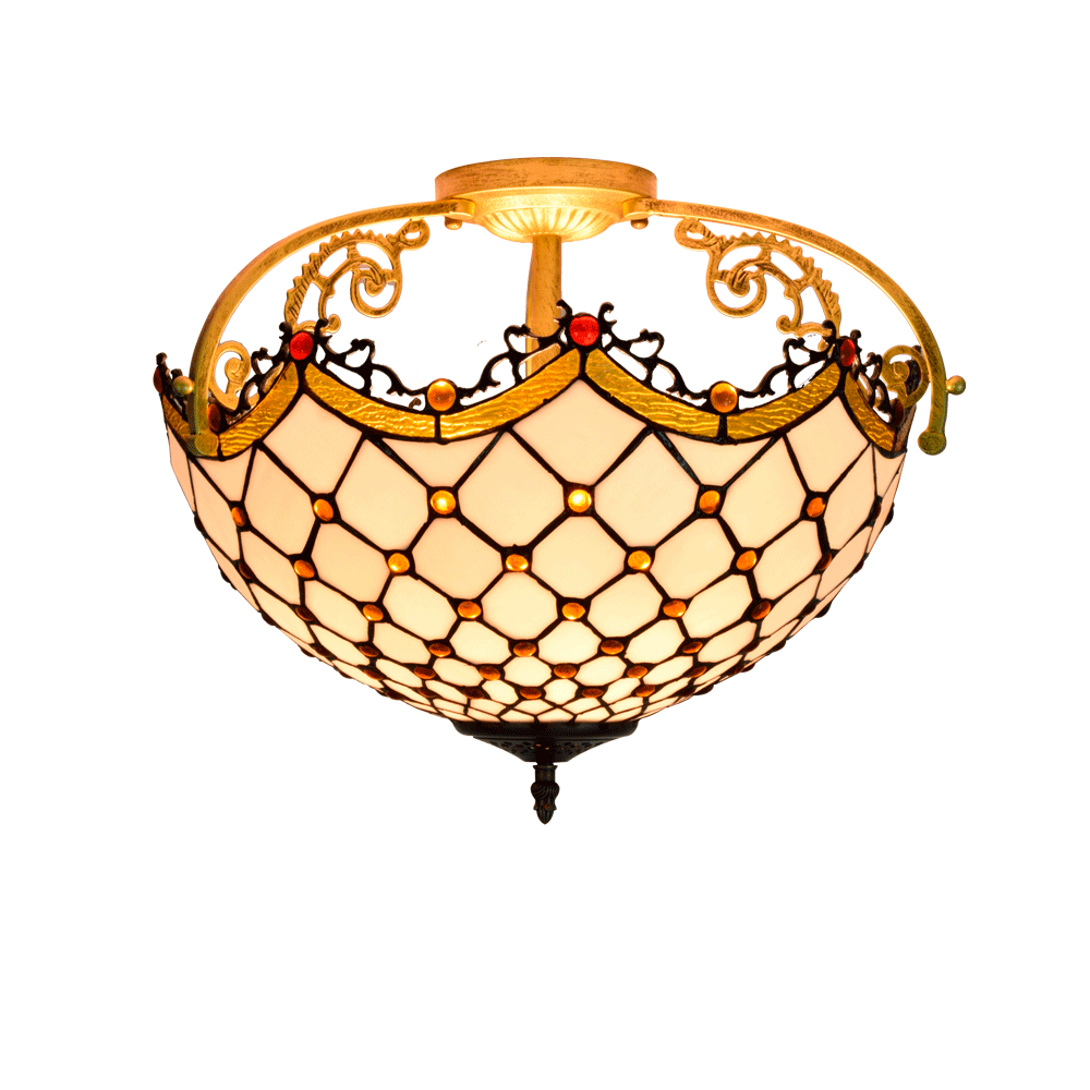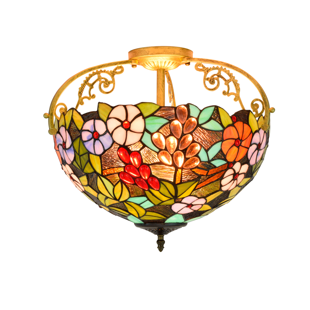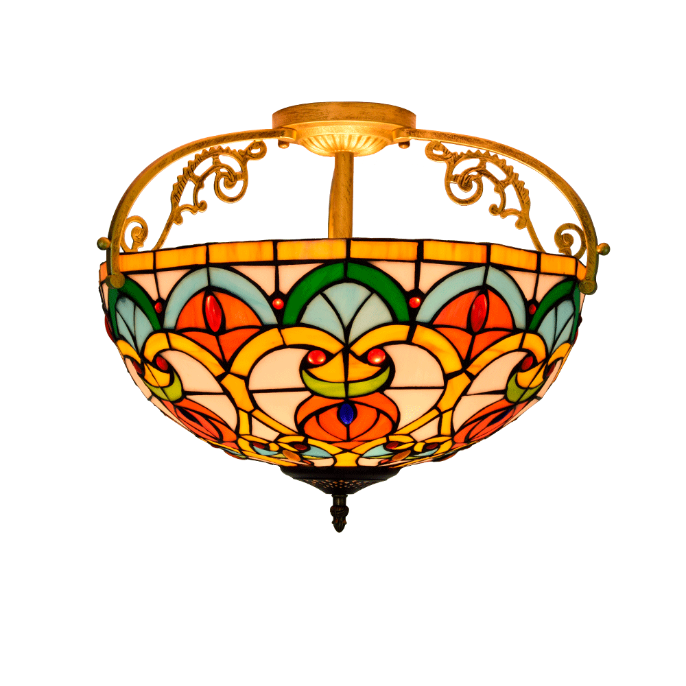 Blivuself Tiffany Style Stained Glass 16 Inch Warm Yellow Semi-Ceiling Light European And American Retro Style, Suitable For Living Room, Dining Room, Bedroom, Bar And Other Indoor Home Decoration 16 Inch Baroque - Semi-Ceiling Light OFC7009