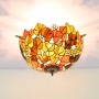 Blivuself Tiffany Stained Glass 20 Inch Brown Flat Mouth Half Ceiling Light European And American Retro Style, Suitable For Living Room, Dining Room, Bedroom, Bar And Other Indoor Home Decoration 20 Inch Maple Leaf Grape Flat Mouth - Half Ceiling Light OFC8015