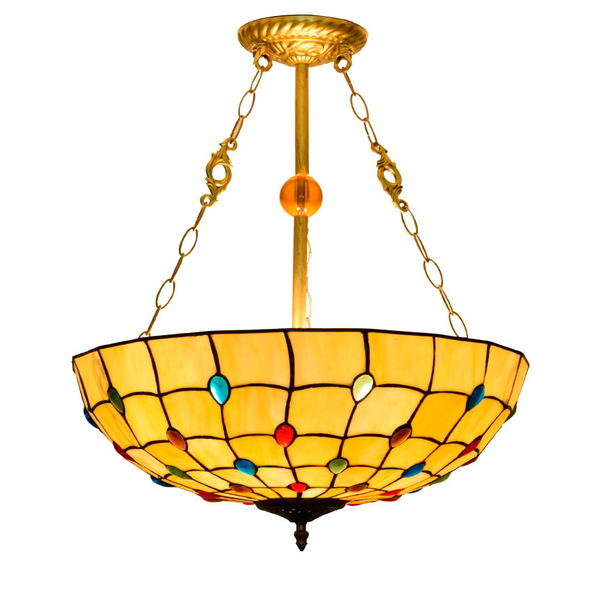 Blivuself Tiffany Style Stained Glass 20 Inch Warm Yellow Upward Chandelier European And American Retro Style Suitable For Living Room, Dining Room, Bedroom, Bar And Other Indoor Home Decoration 20 Inch Colored Beads Flat Mouth - New clasp up chandelier OFP1119