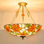 Blivuself Tiffany Style Stained Glass 24-Inch Orange Sunflower Upward Chandelier European And American Retro Style Suitable For Living Room, Dining Room, Bedroom, Bar And Other Indoor Home Decoration 24-Inch Sunflower Flat Mouth - New Buckle Ring Anti-Chandelier OFP1118