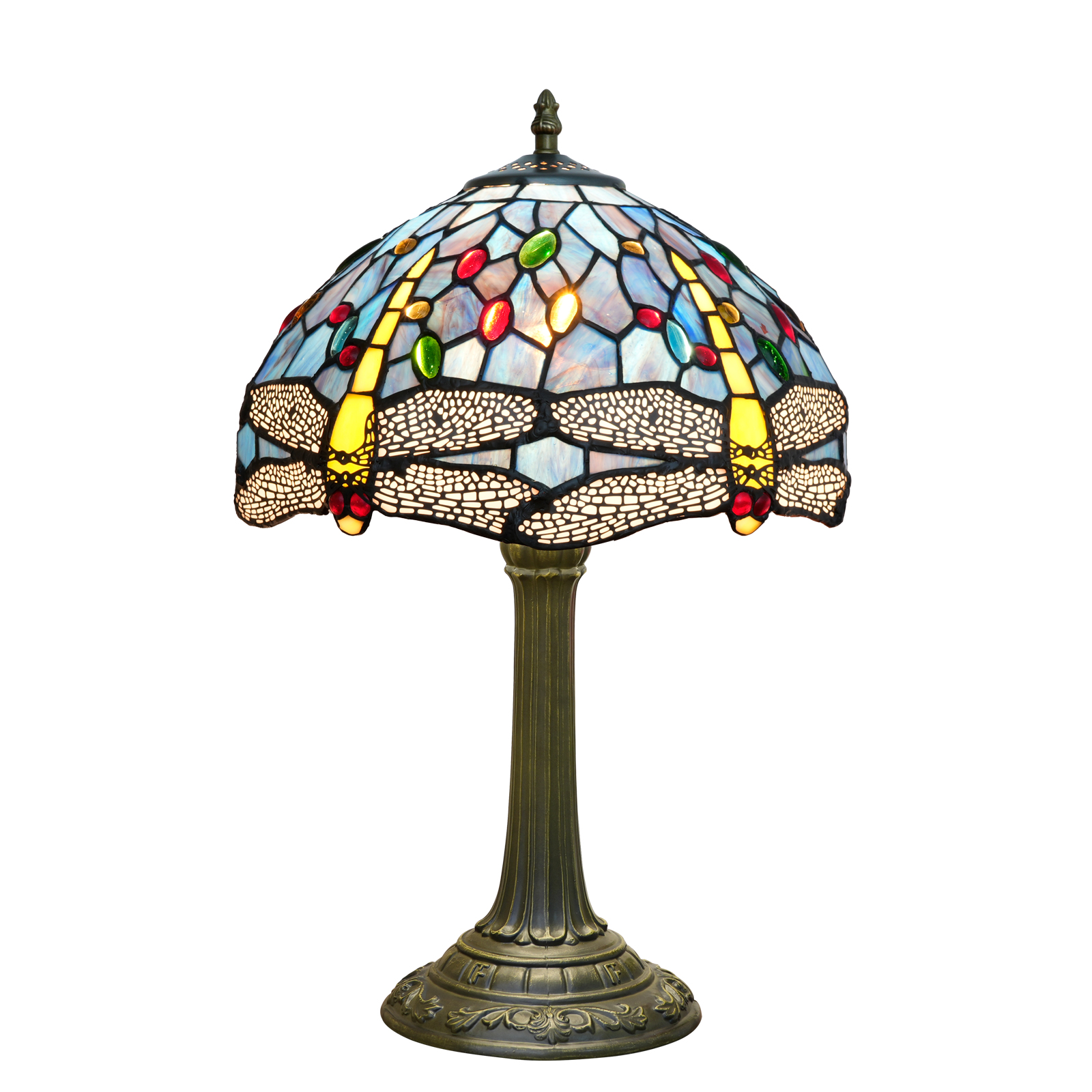 Blivuself Tiffany Stained Glass Table Lamp, 12 Inch Victorian Retro Style Dragonfly Pattern Design, Suitable For Bedroom Study Dining Room And Other Home Decoration Art (OFT1293, Blue Violet)