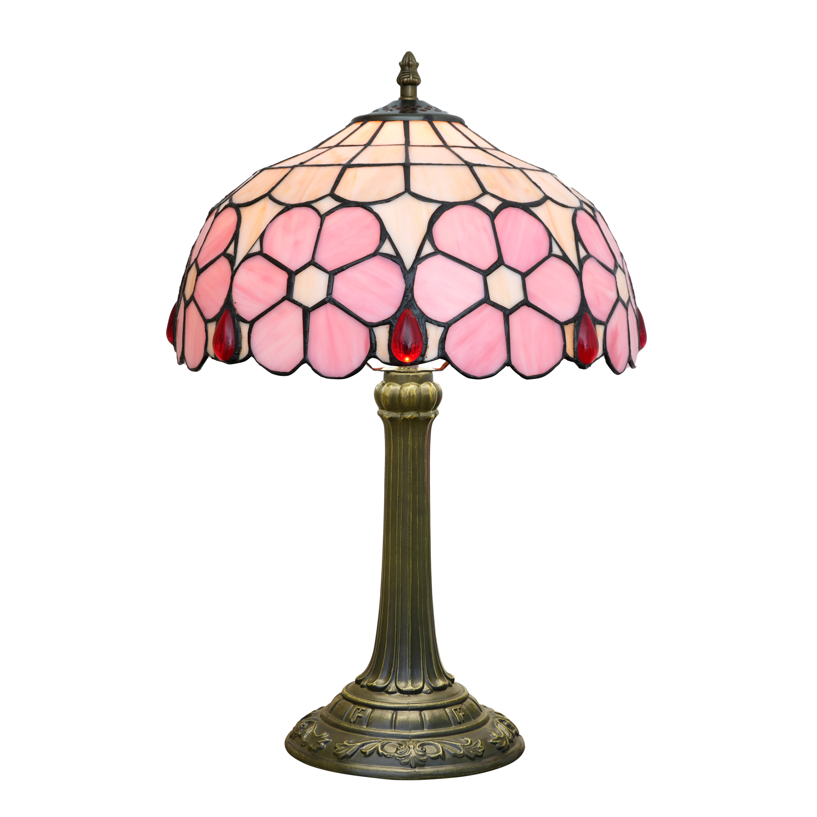 Blivuself Tiffany Stained Glass Table Lamp, 12 Inch Victorian Retro Style Pink Flower Pattern Design Bedside Lamp, Suitable For Bedroom Study Dining Room And Other Home Decoration Art (OFT1298)