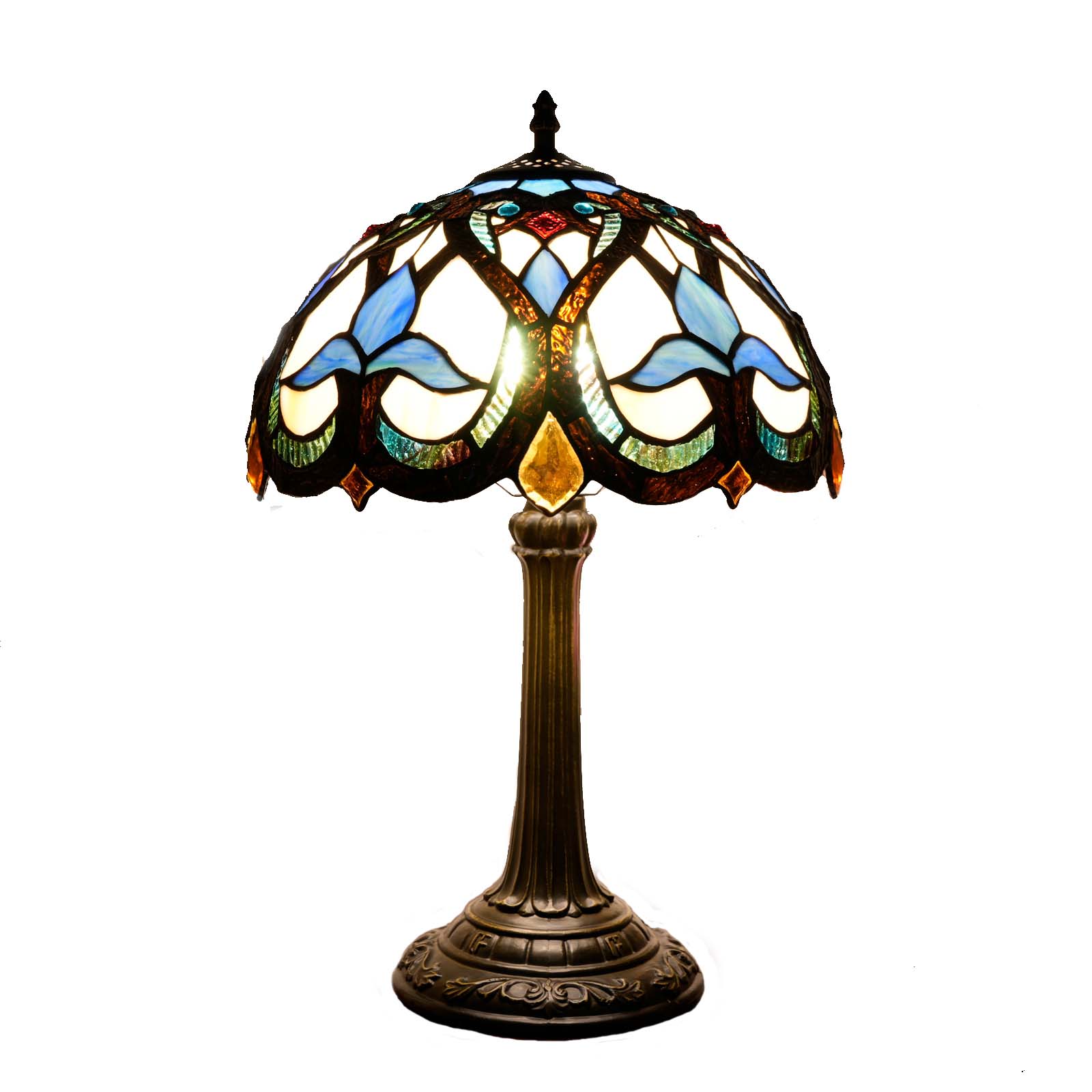 Blivuself Tiffany Stained Glass Table Lamp,12-Inch Retro-Style Cyan Umbrella-Shaped Handcrafted Art, Suitable For Home Decoration Art In Bedrooms, Dormitories, Living Rooms, Etc(OFT1336)