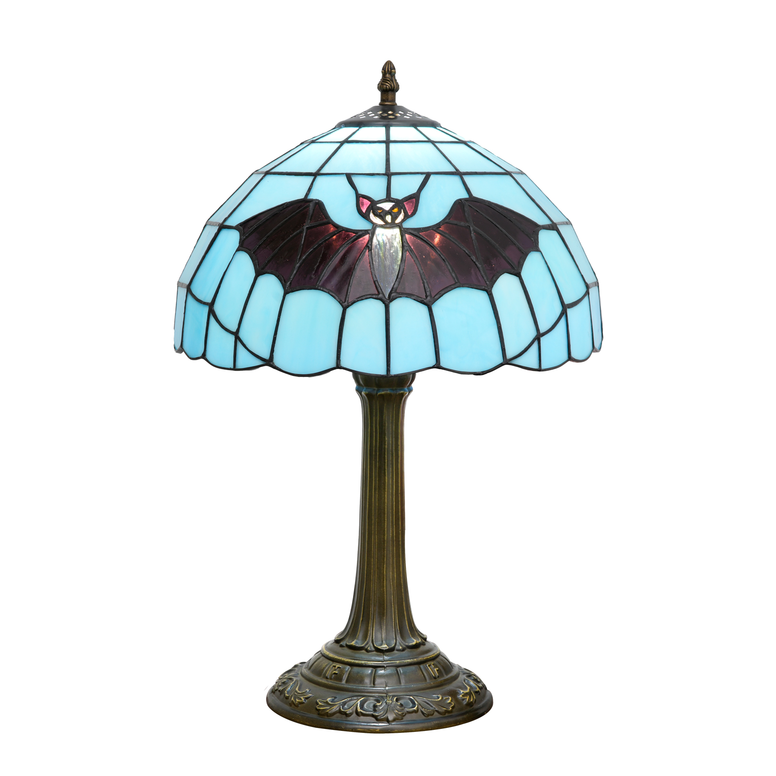 Blivuself Tiffany Style Stained Glass Table Lamp,12-Inch Blue Background Bat Bedside Lamp, Handcrafted, Suitable For Home Decoration Art In Bedrooms, Dormitories, Dining Rooms, Etc(OFT1317)
